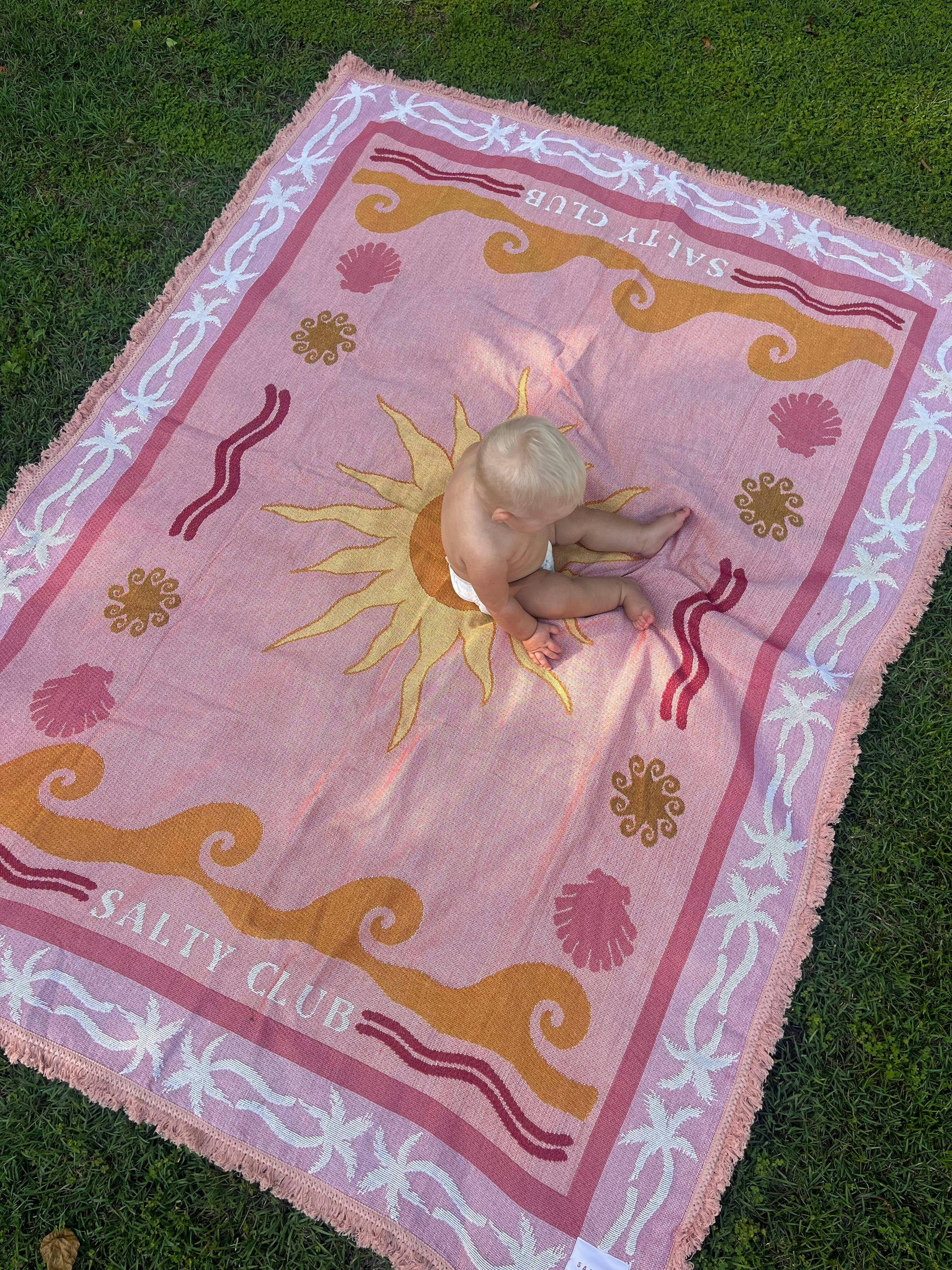 Salty Luxe was born from Sarahs love of the world. That feeling you have when you are completely free; A desire to bring genuine good into the world and the endless search for paradise. Whether you're planning a beach day, an adventurous camping trip, or simply lounging at home, the Salty Luxe X Sunni Scenes Travel Rug offers a stylish and functional solution. It's an ideal gift for travellers, outdoor enthusiasts, or anyone who appreciates quality and design. Use it to create a cozy picnic setup, a relaxing beach spot, or a chic living room accent.