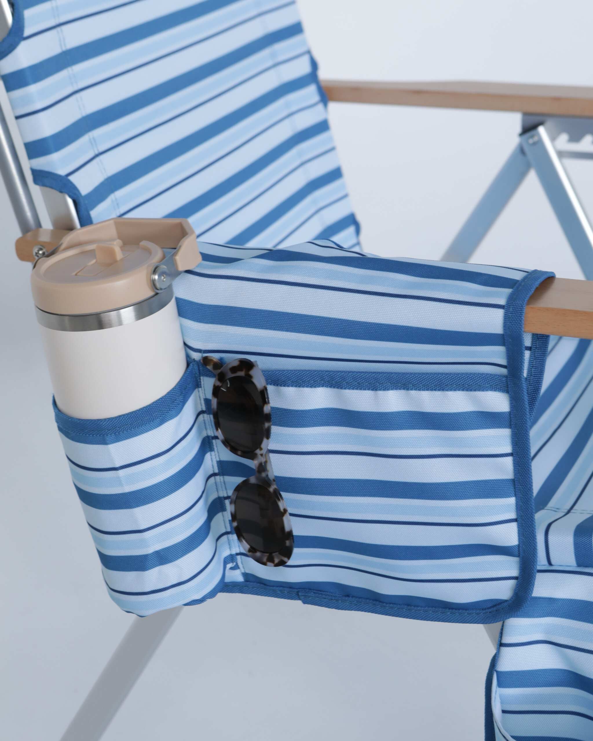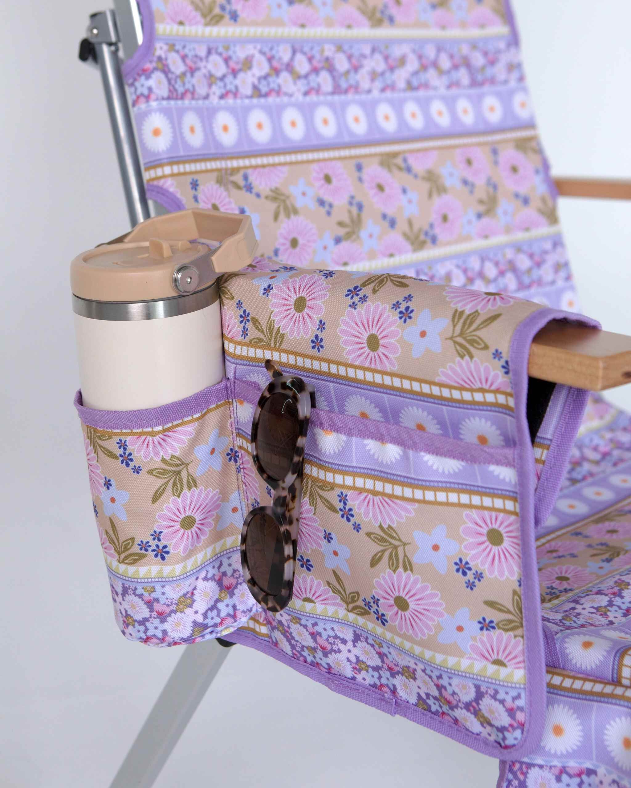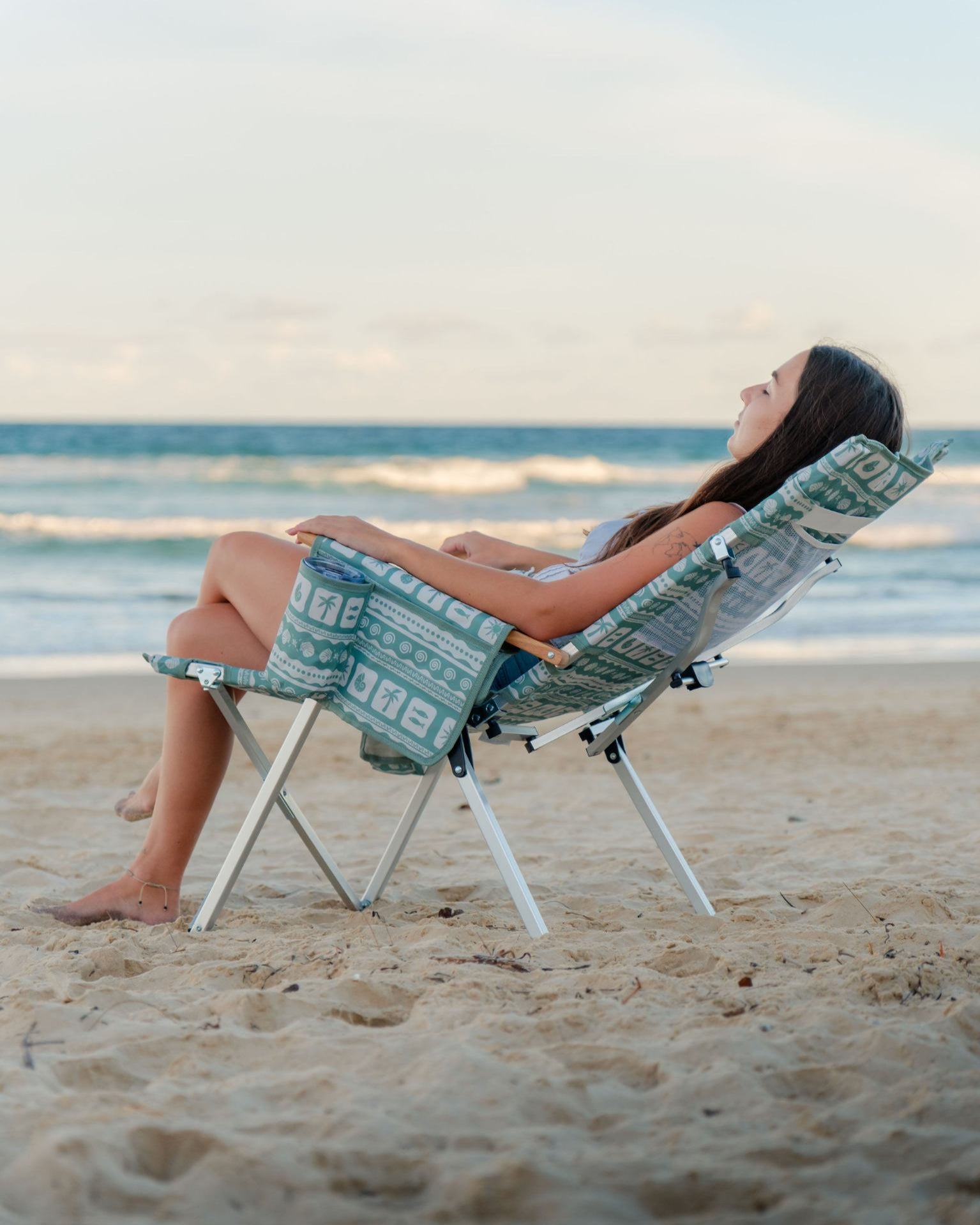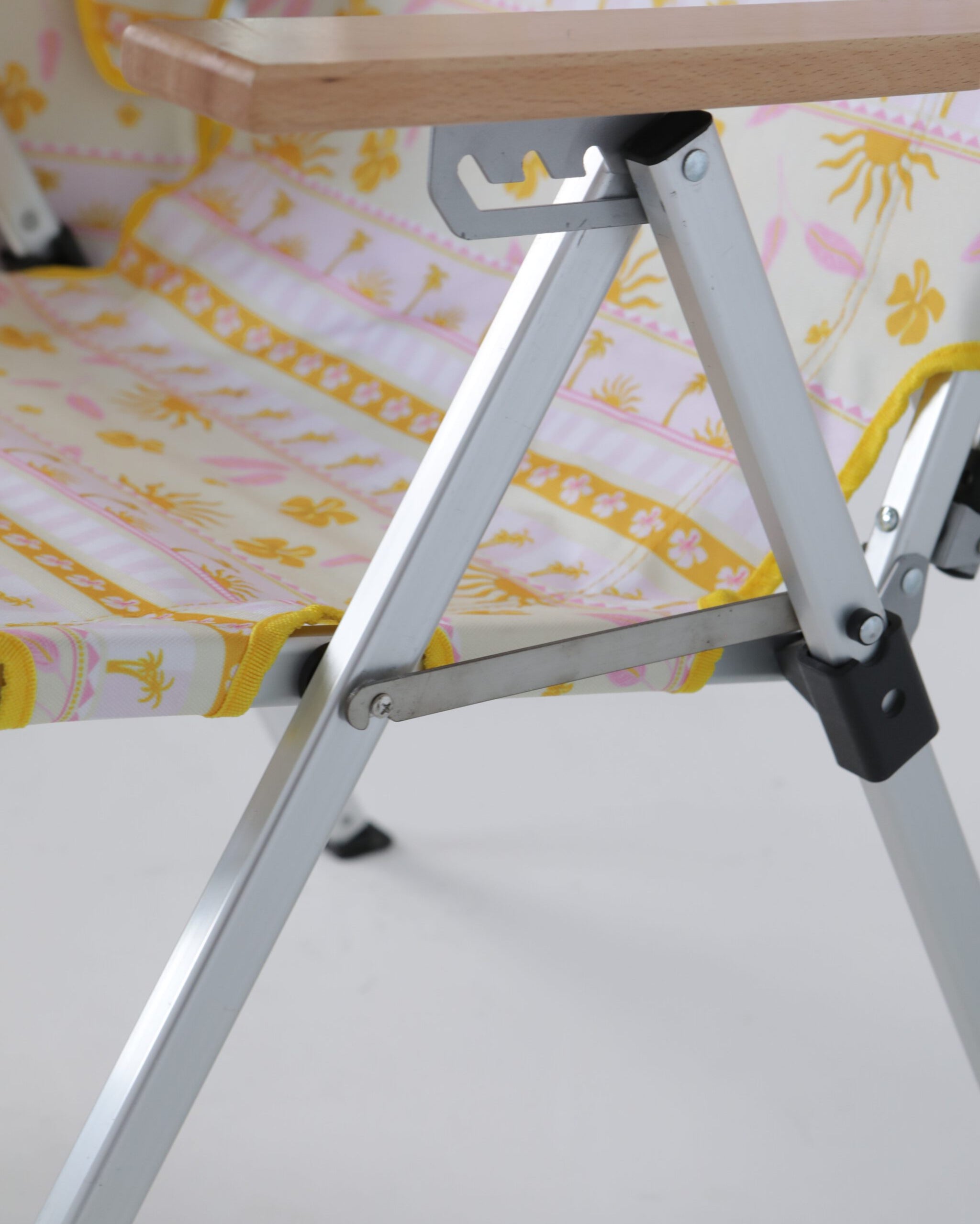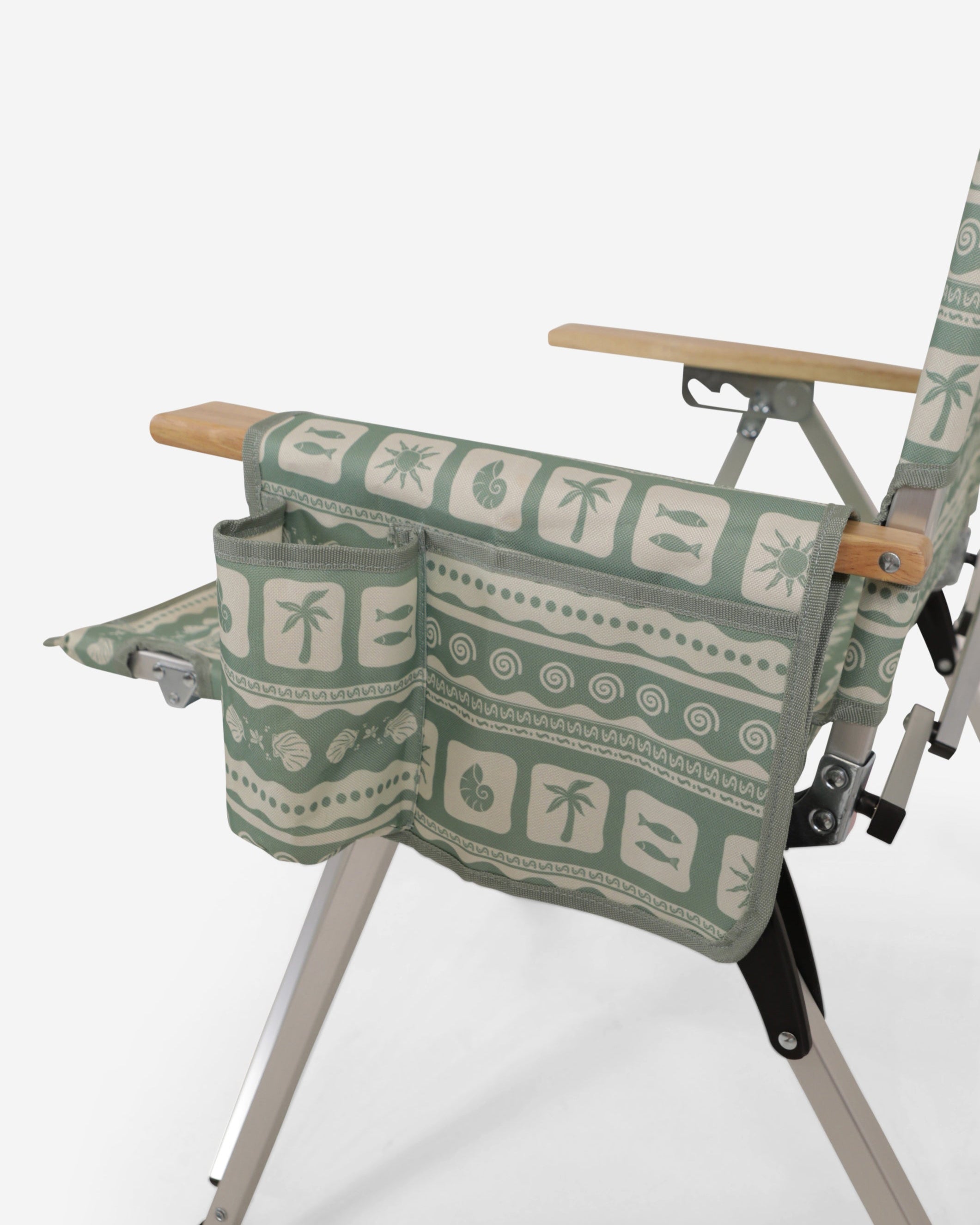 Unique Sunni Scenes prints, Four stage reclining, Removable matching head rest, Compact quad fold pack up design, Generously sized cup holder & Quick dry material.