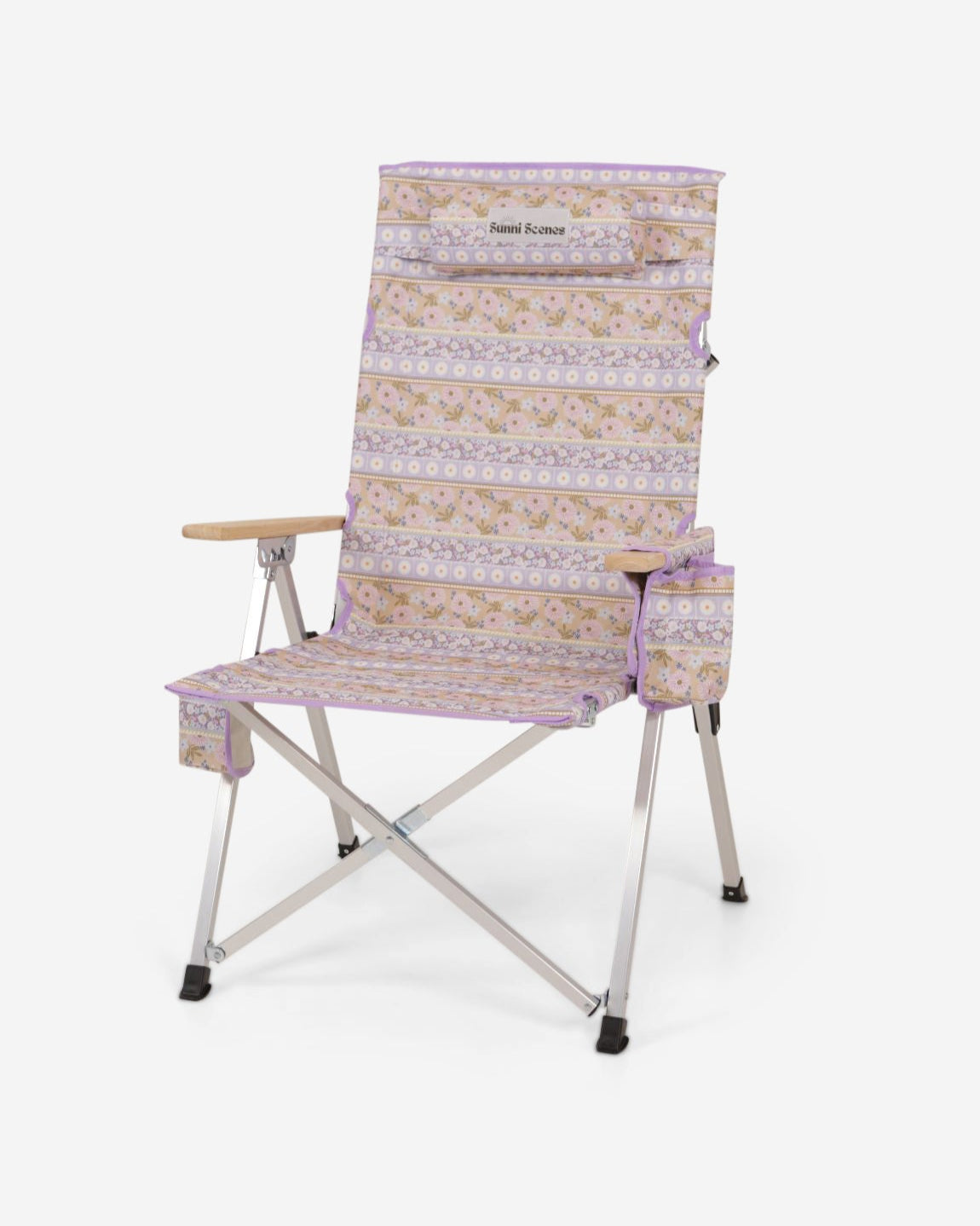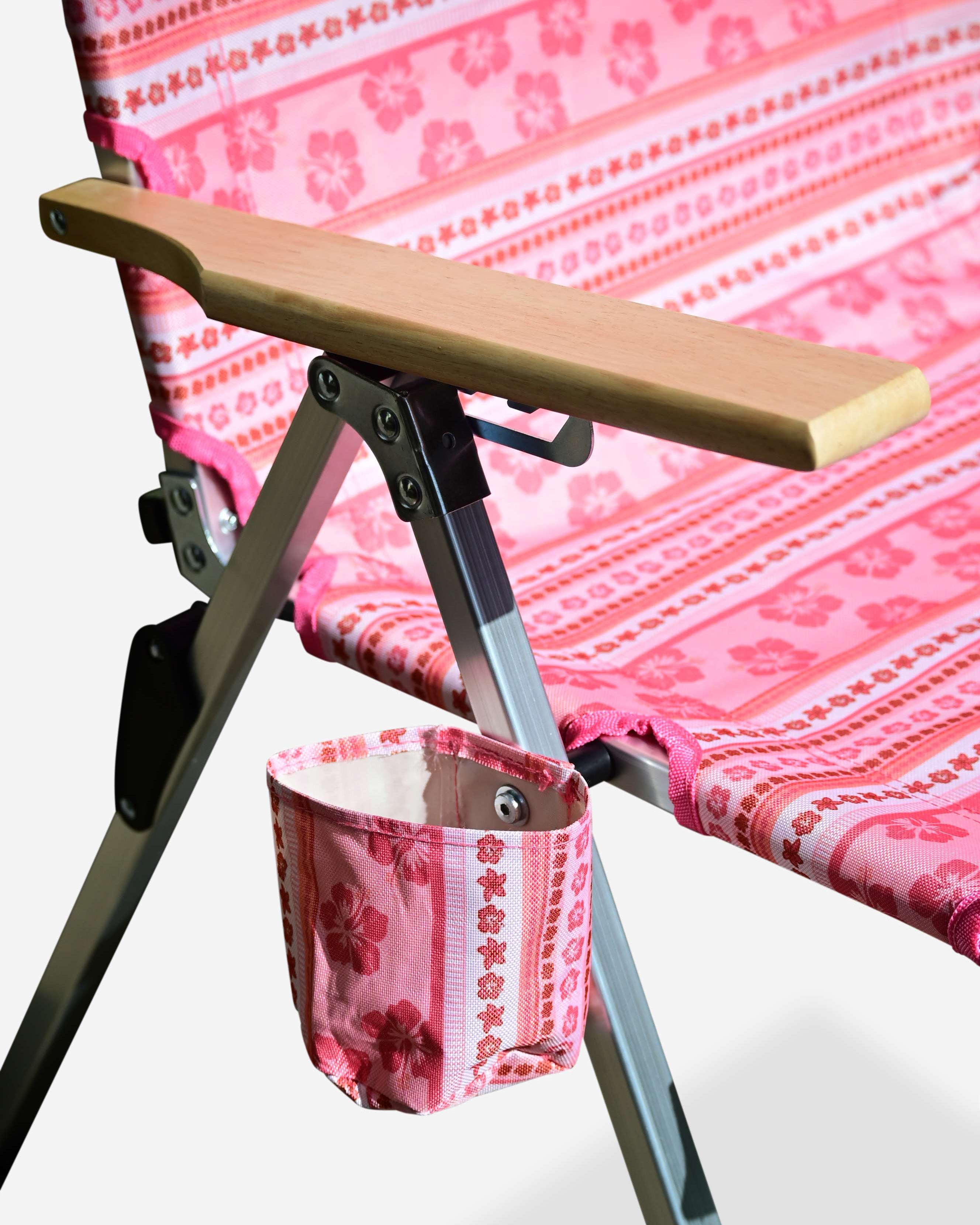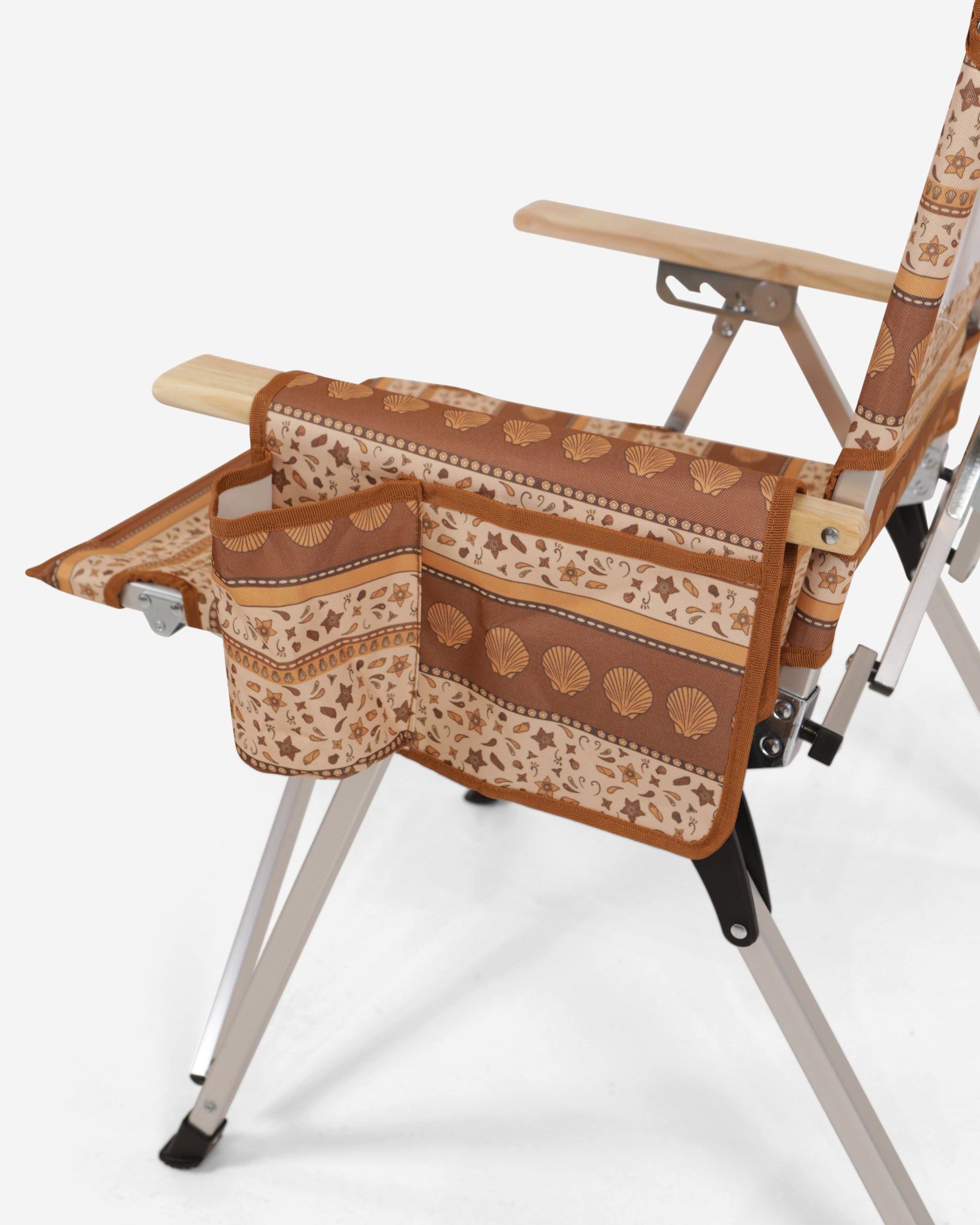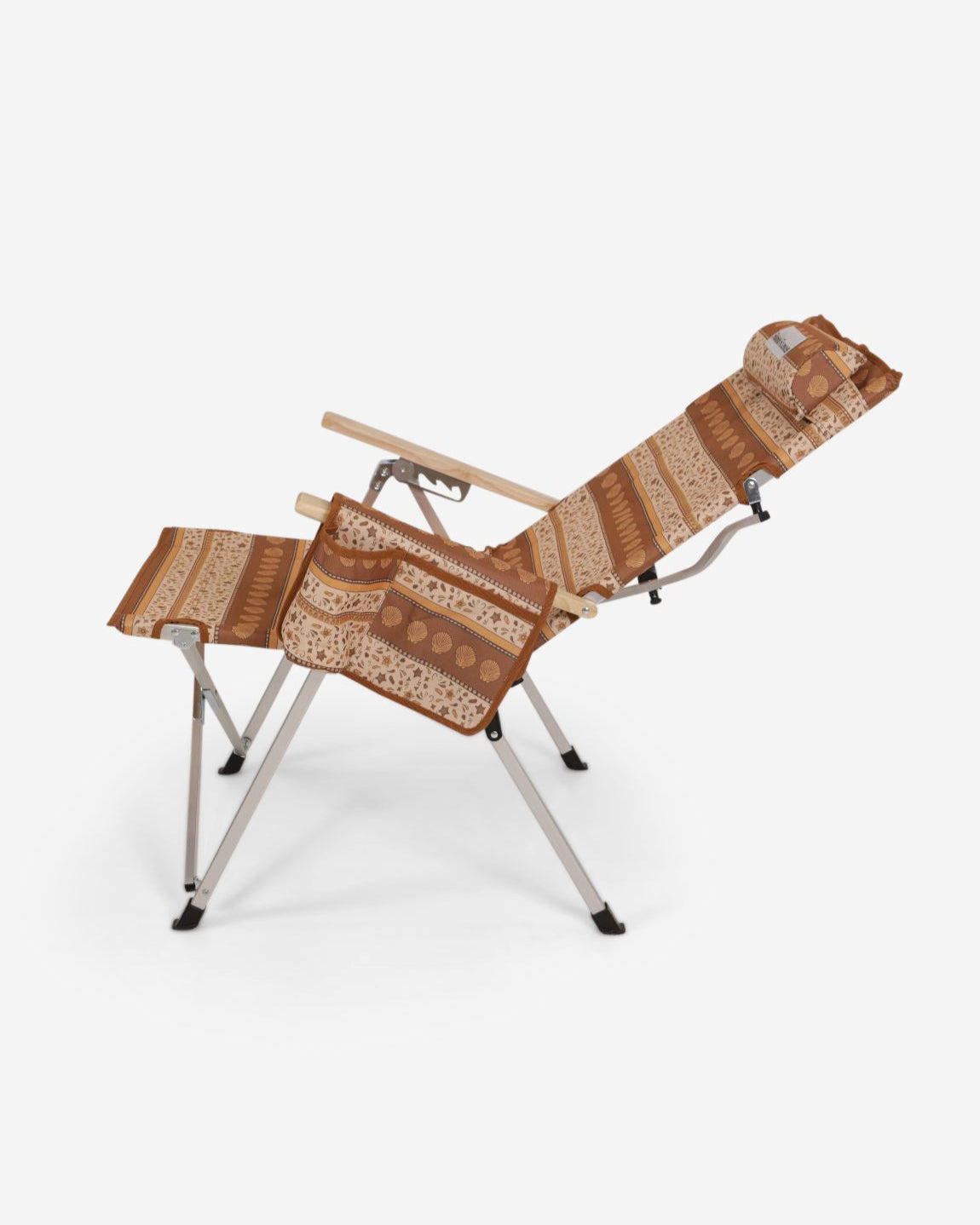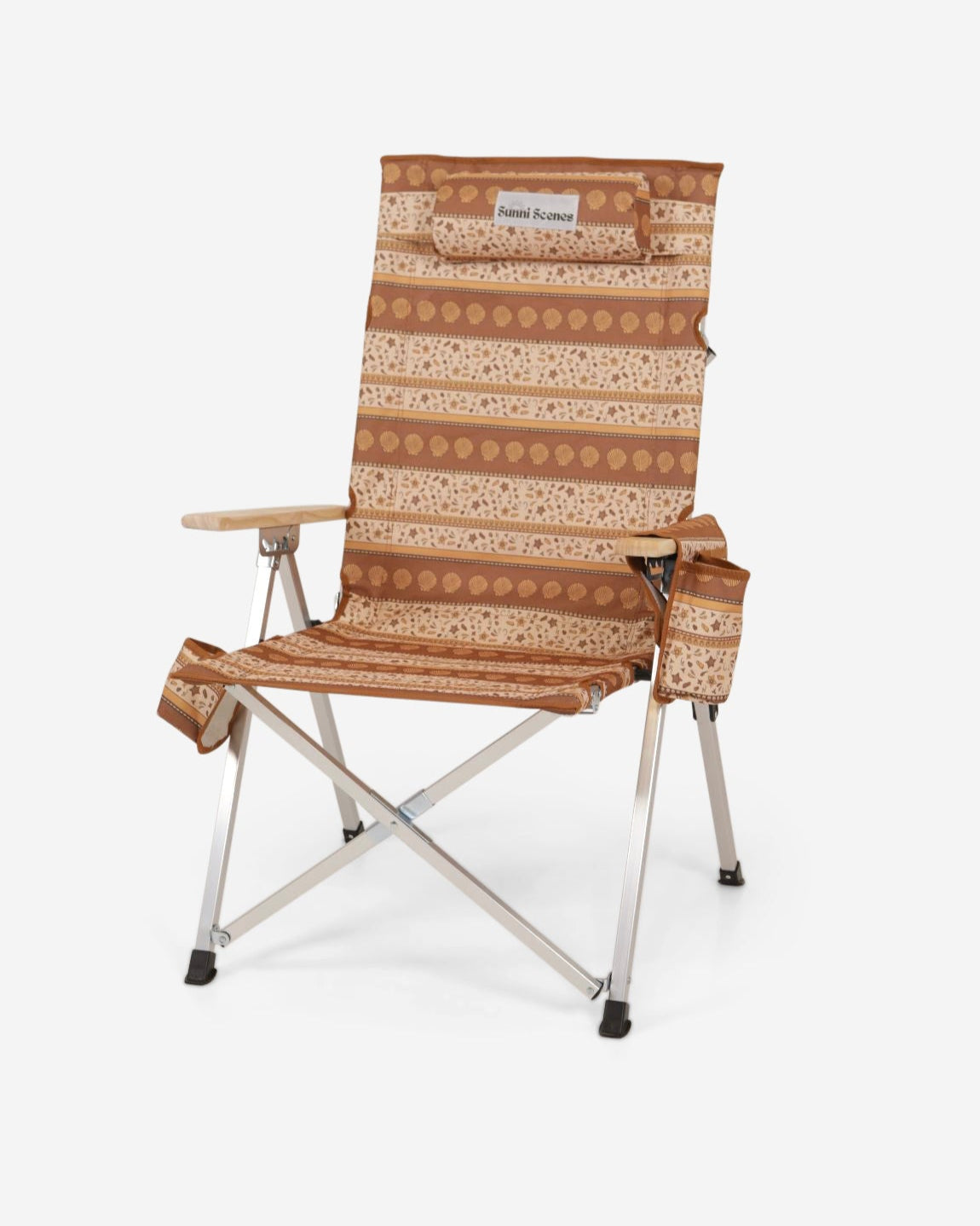 Unique Sunni Scenes prints, Four stage reclining, Removable matching head rest, Compact quad fold pack up design, Generously sized cup holder & Quick dry material.