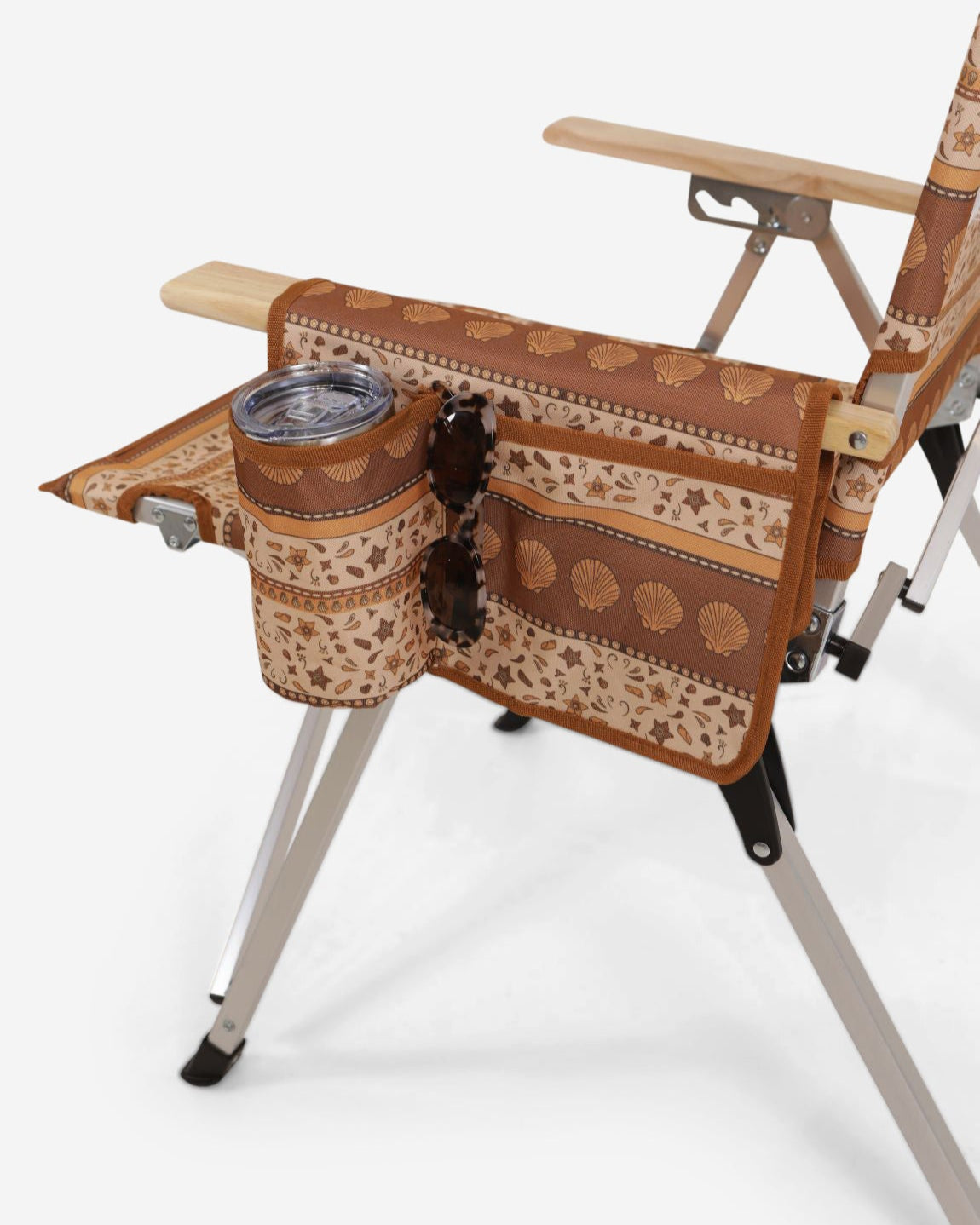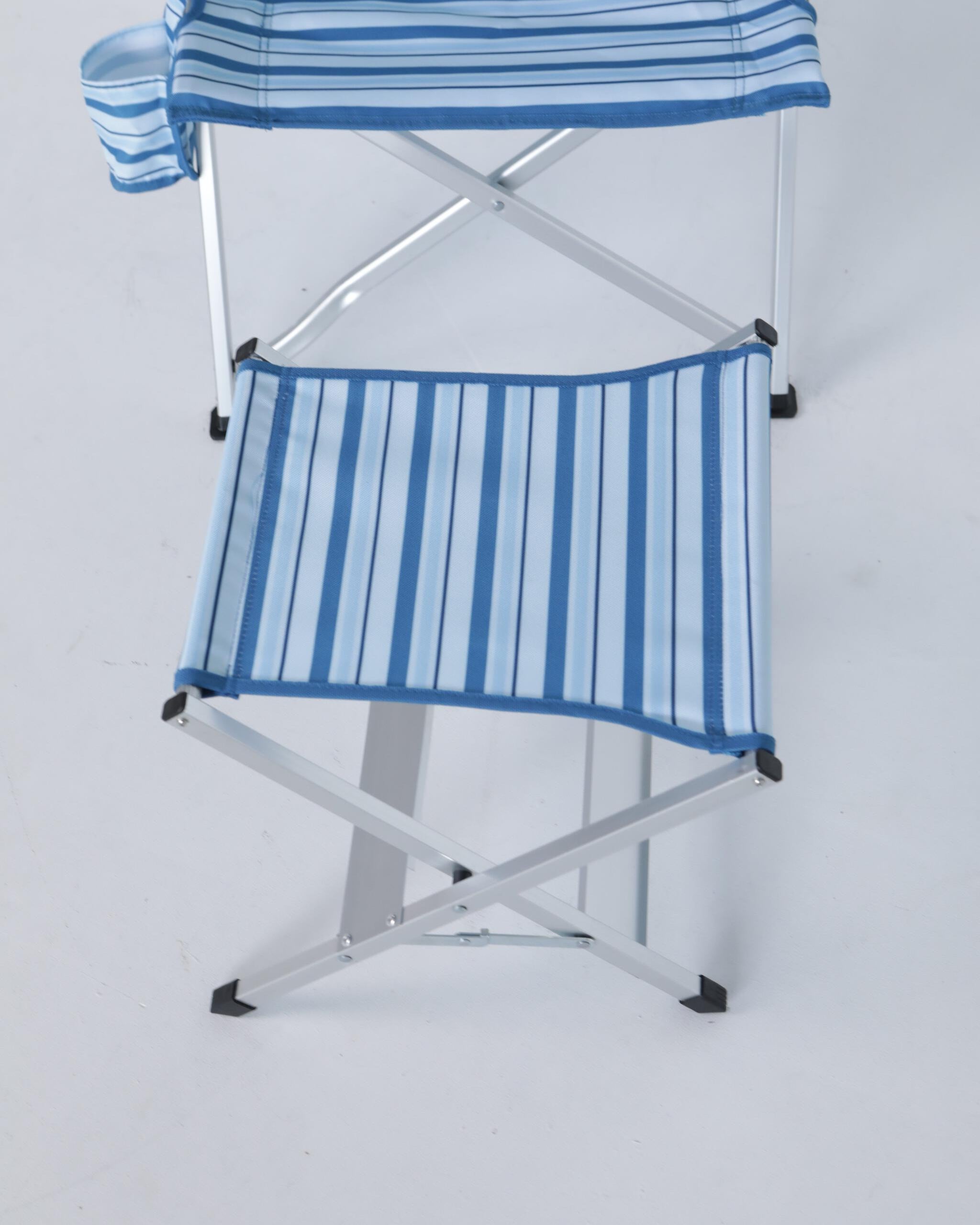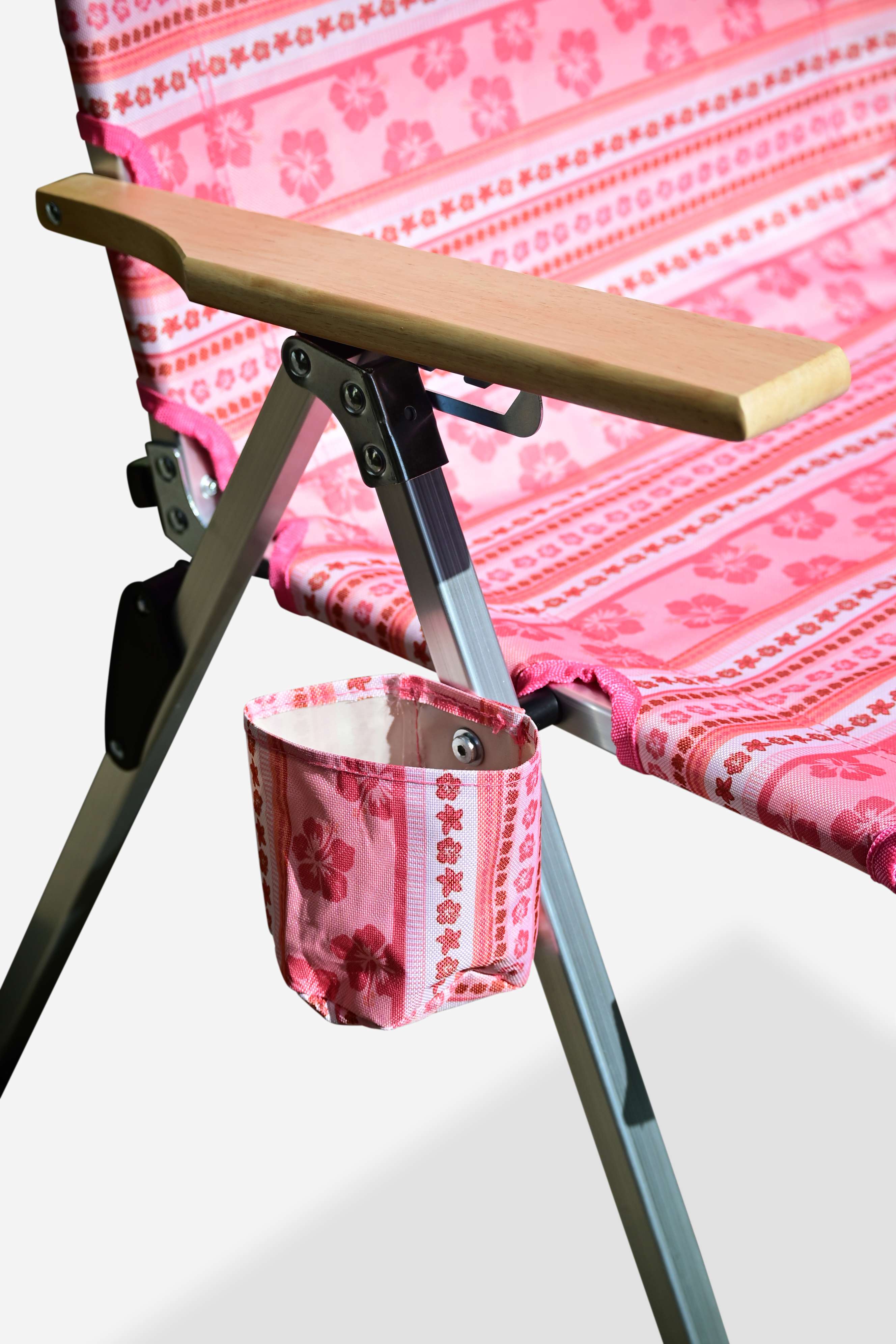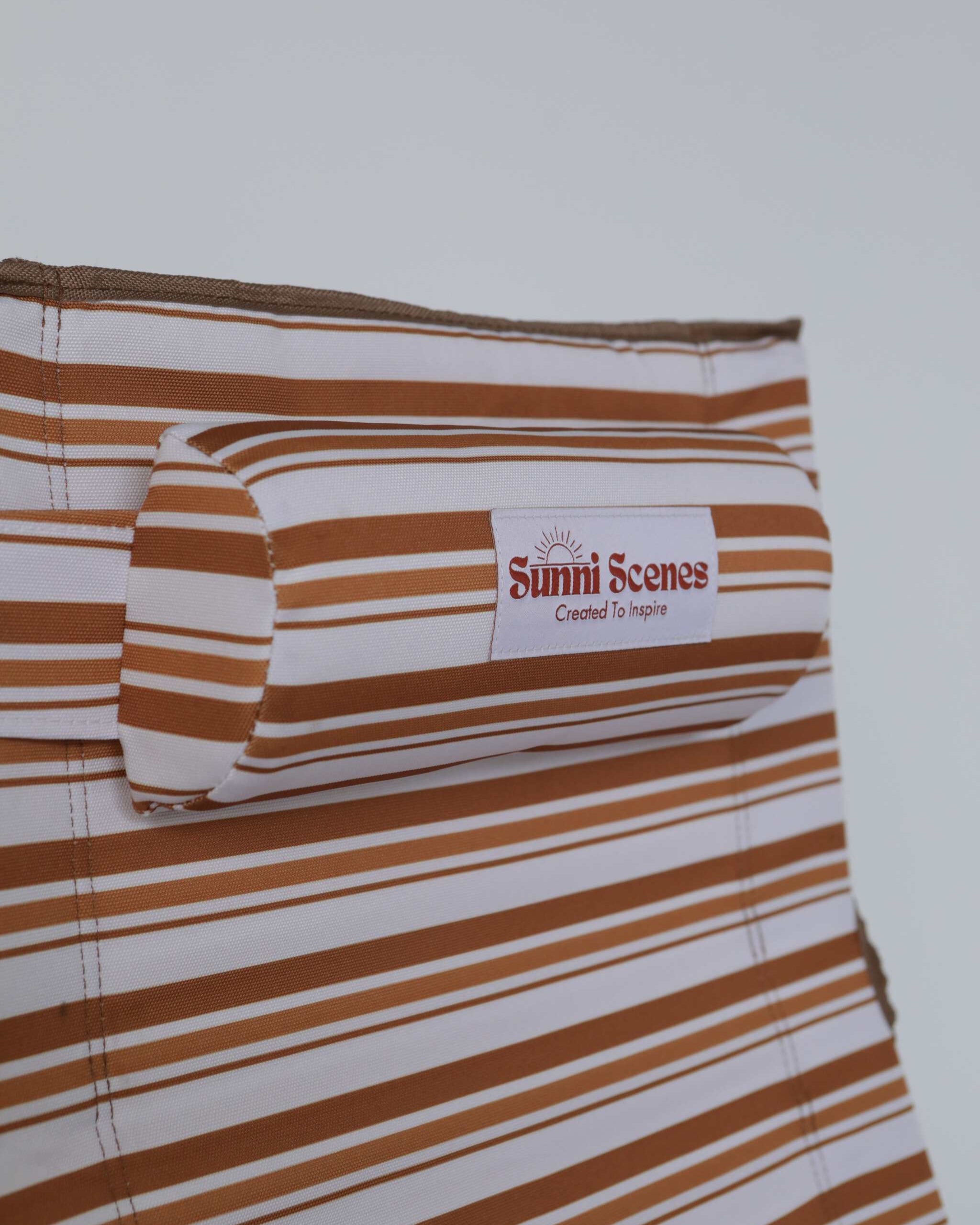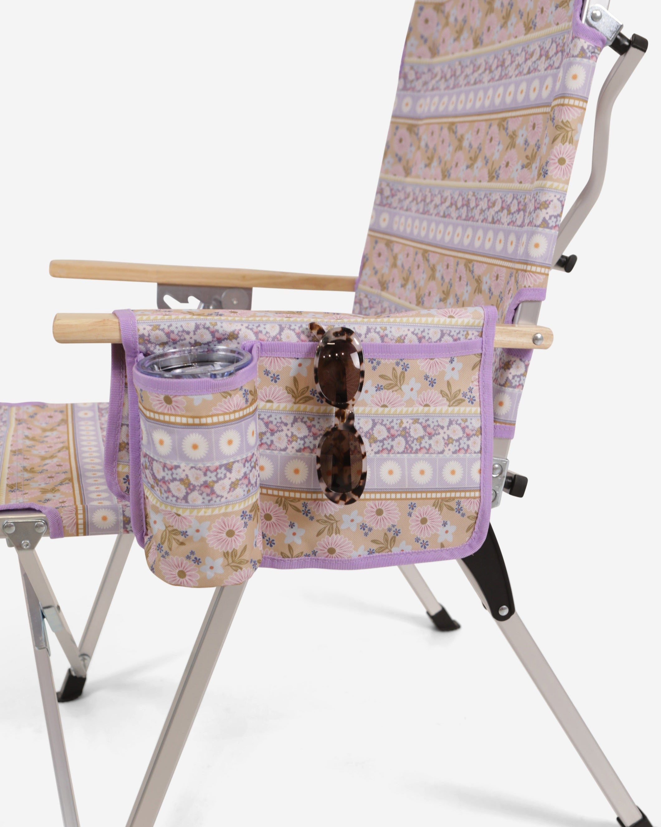 Unique Sunni Scenes prints, Four stage reclining, Removable matching head rest, Compact quad fold pack up design, Generously sized cup holder & Quick dry material.