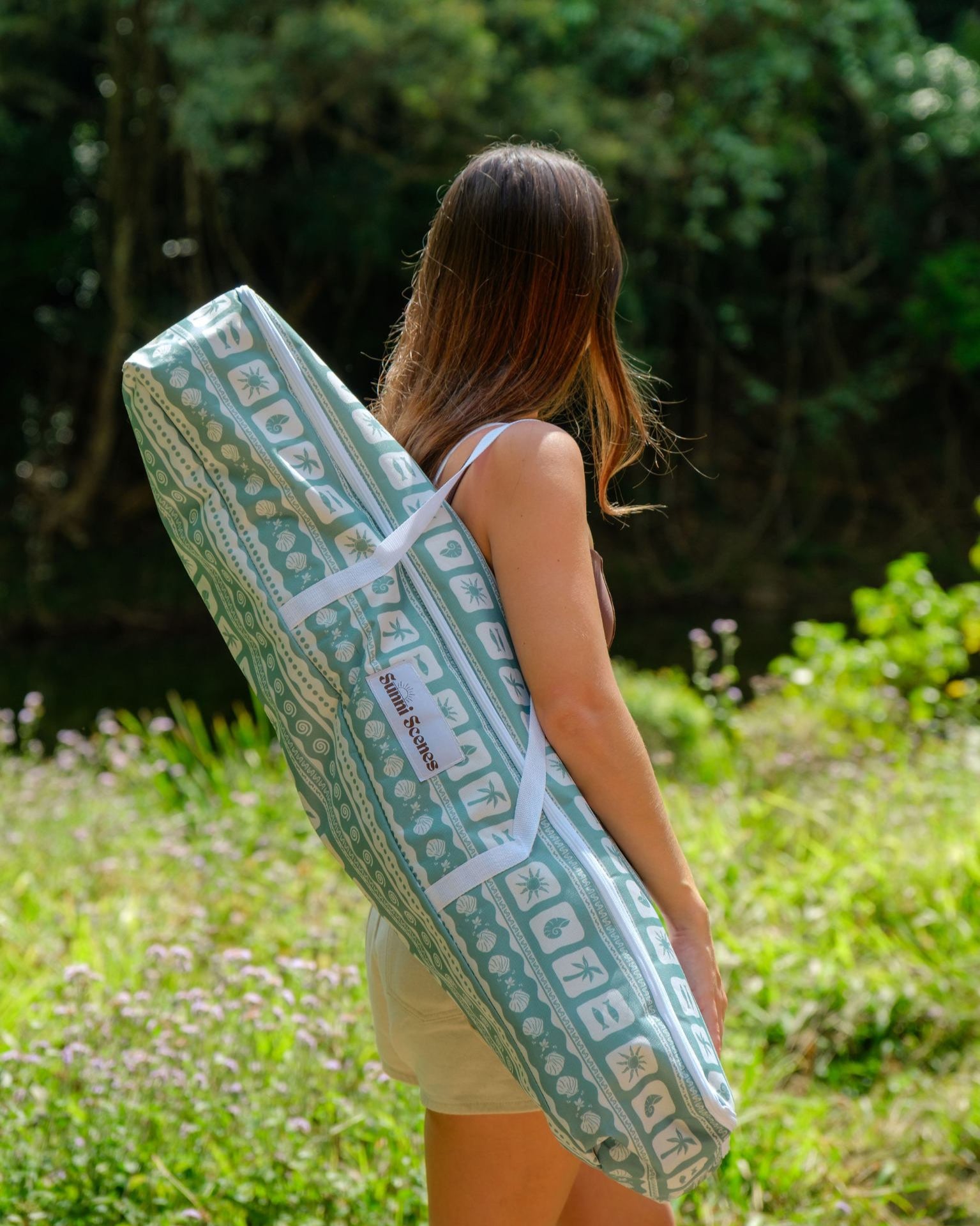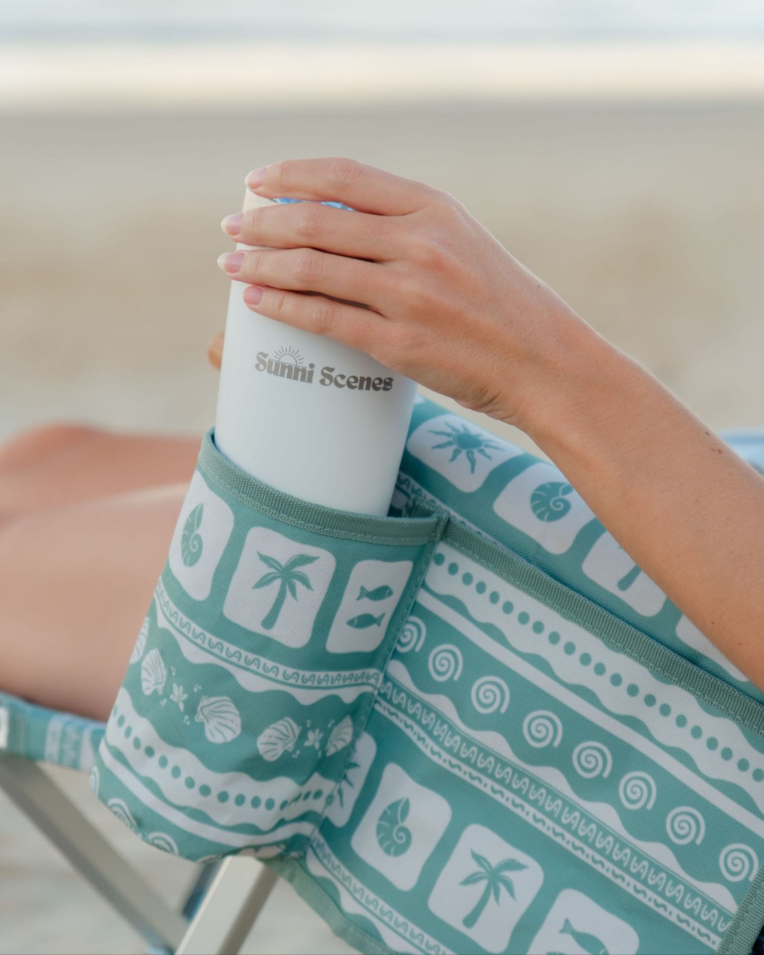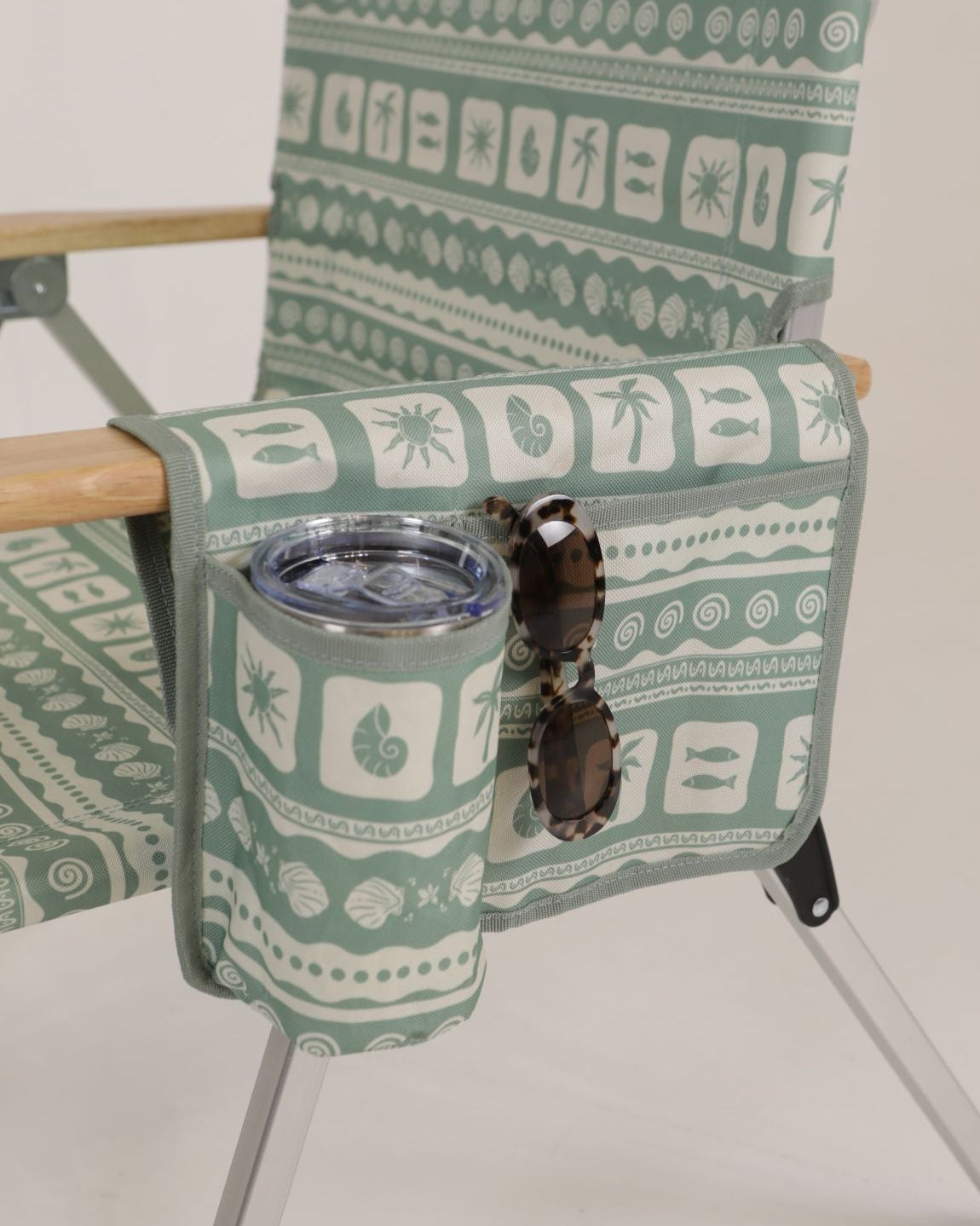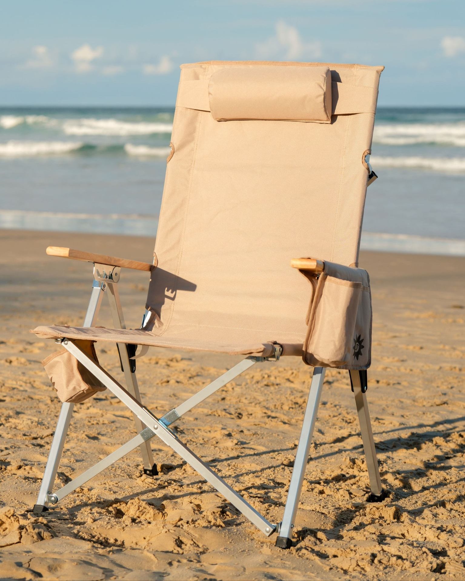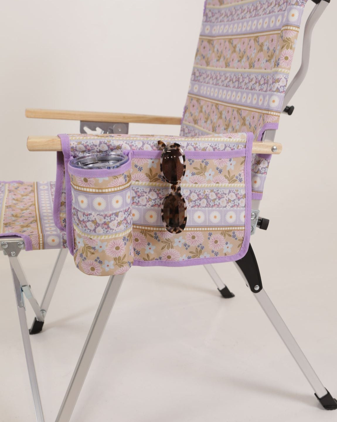 Unique Sunni Scenes prints, Four stage reclining, Removable matching head rest, Compact quad fold pack up design, Generously sized cup holder & Quick dry material.