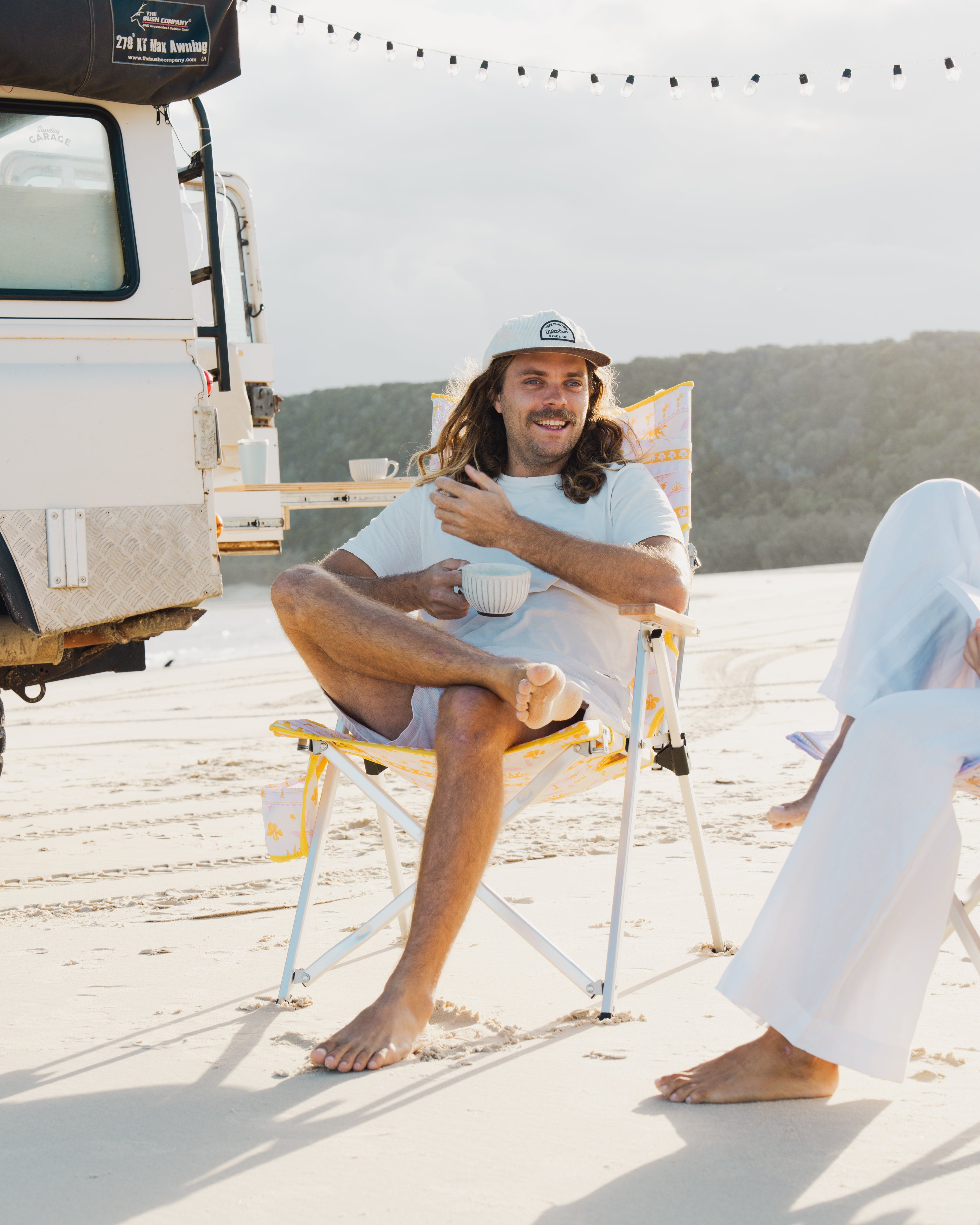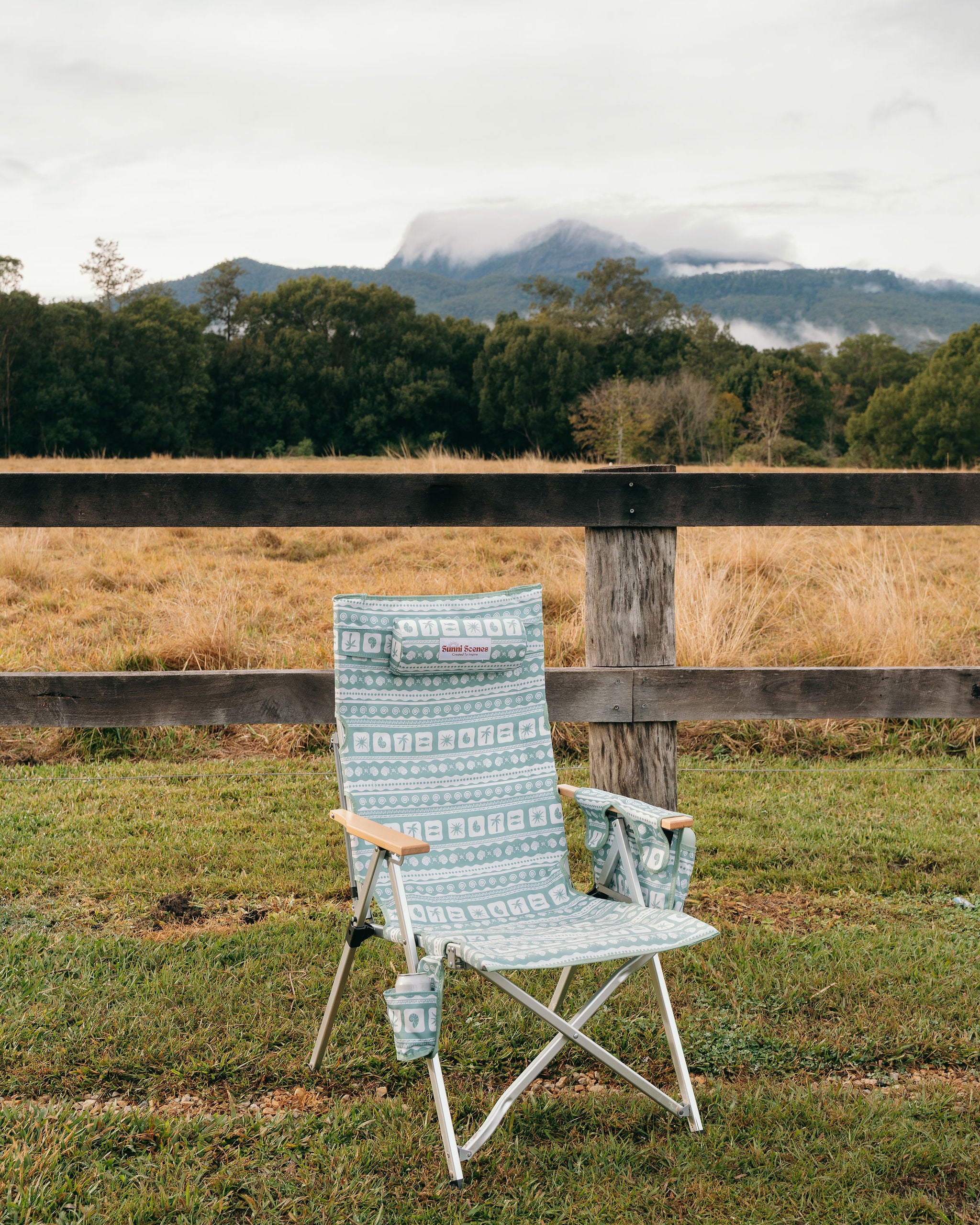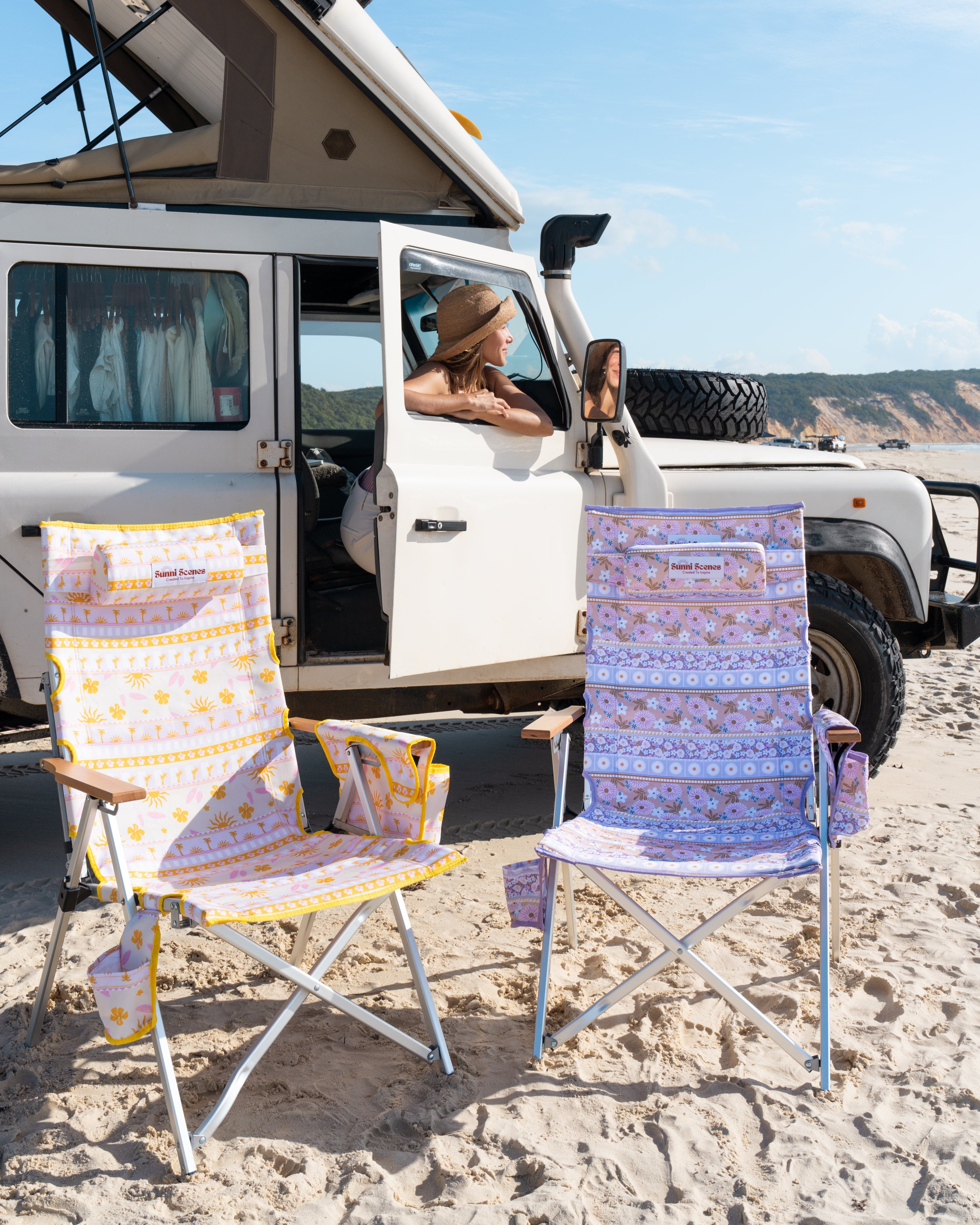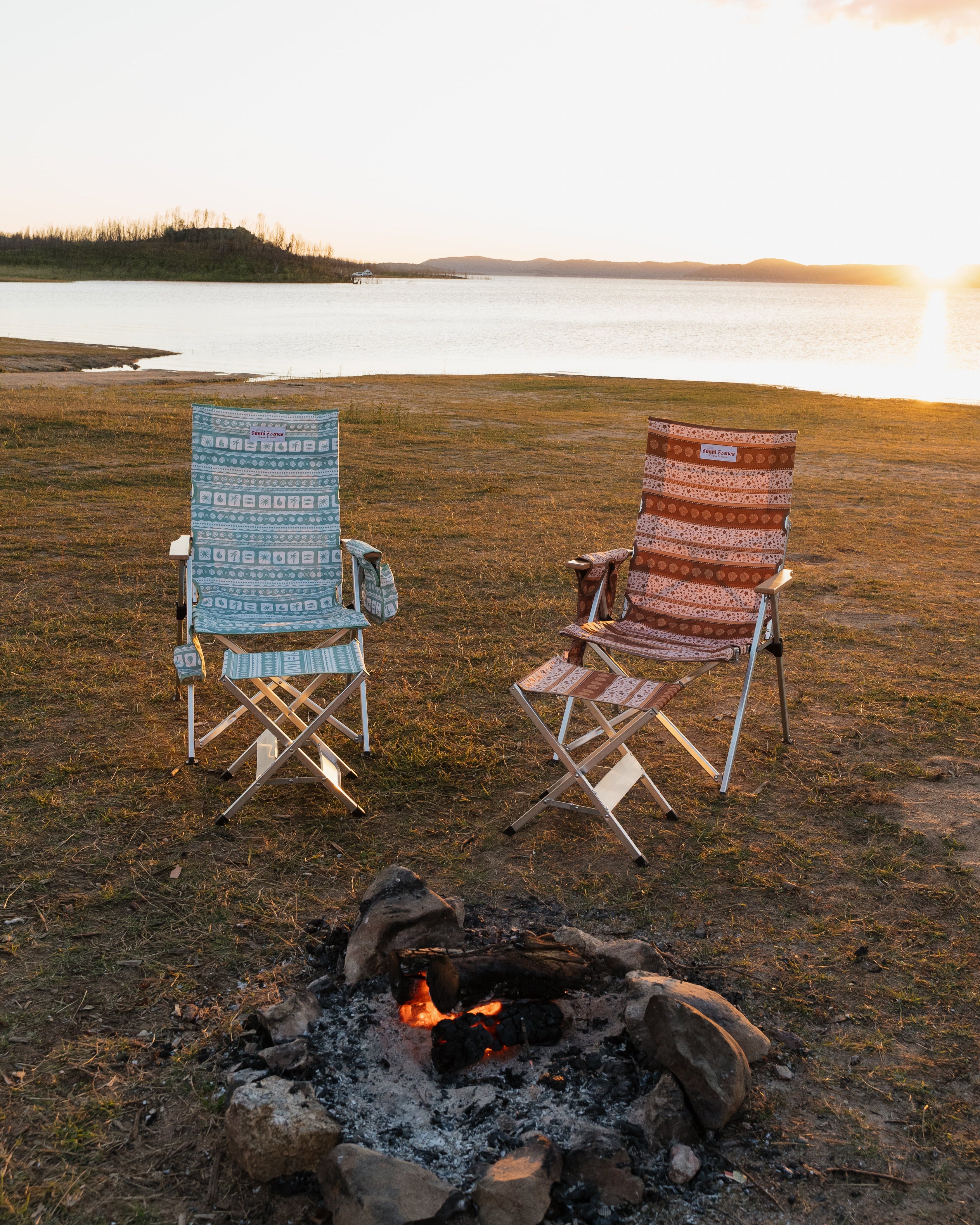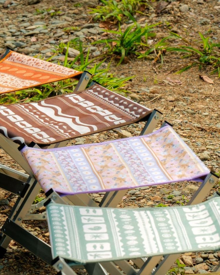 What sets our chairs apart is their compact folding design, reminiscent of classic camp chairs, making them easy to transport and store. Available in exclusive Sunni Scenes printed patterns, these chairs are the only ones of their kind in Australia, adding a unique flair to your camping gear.