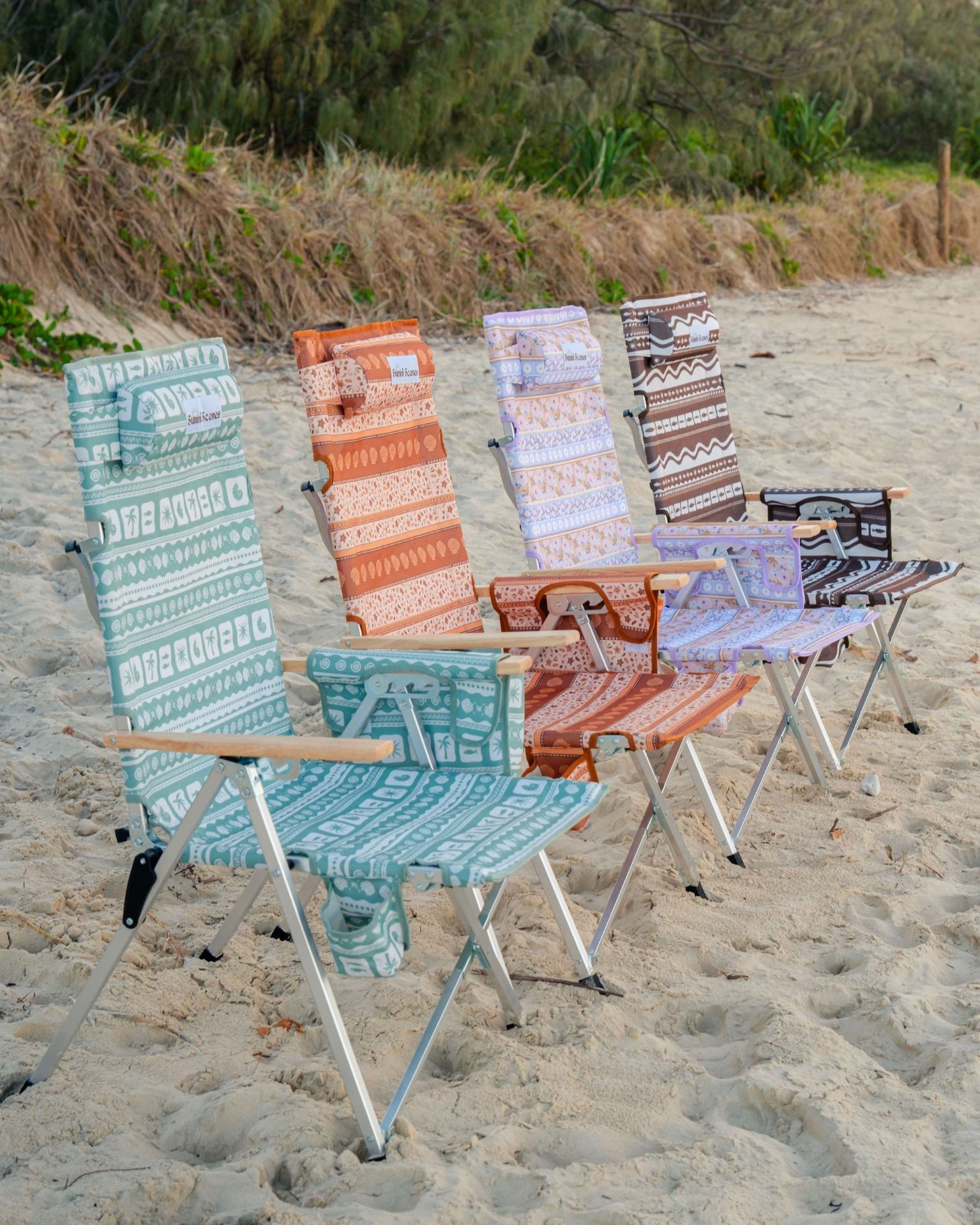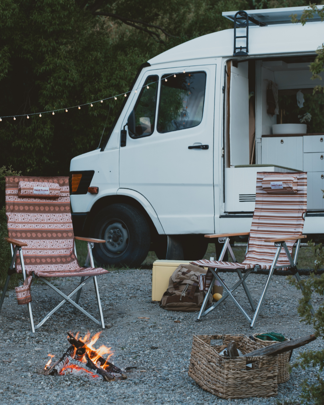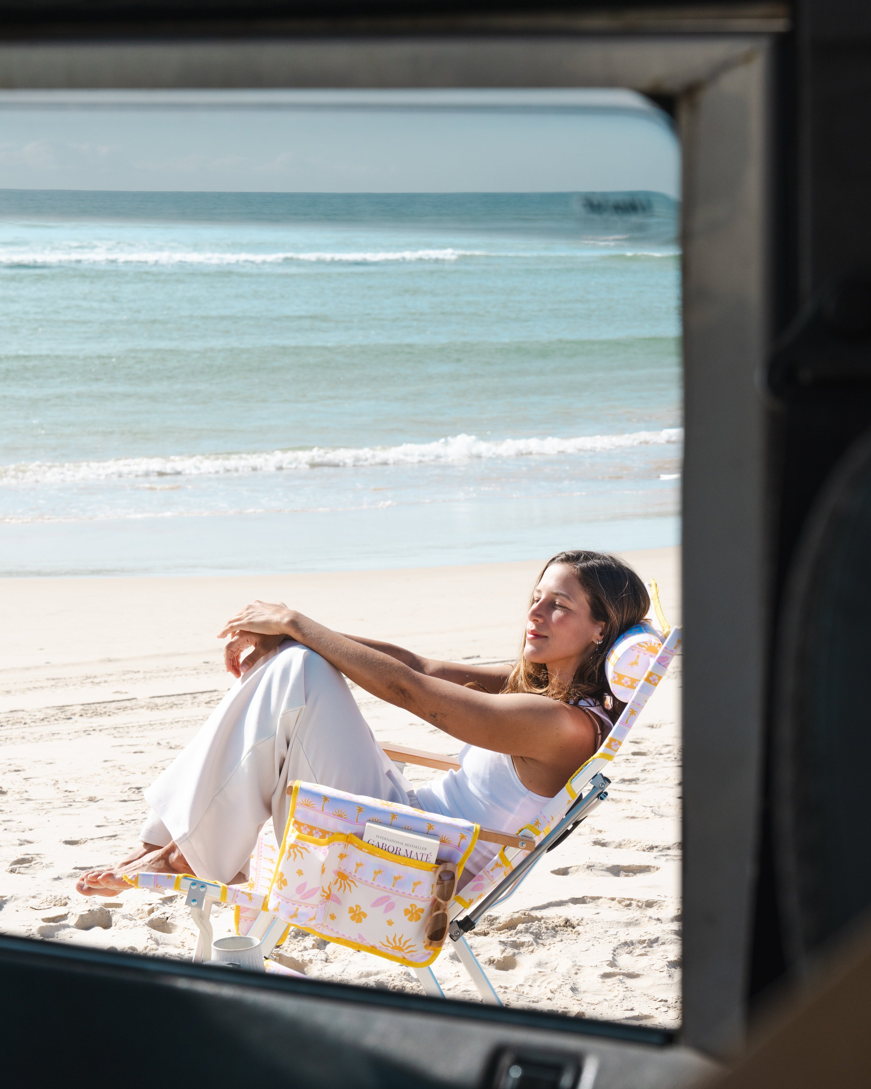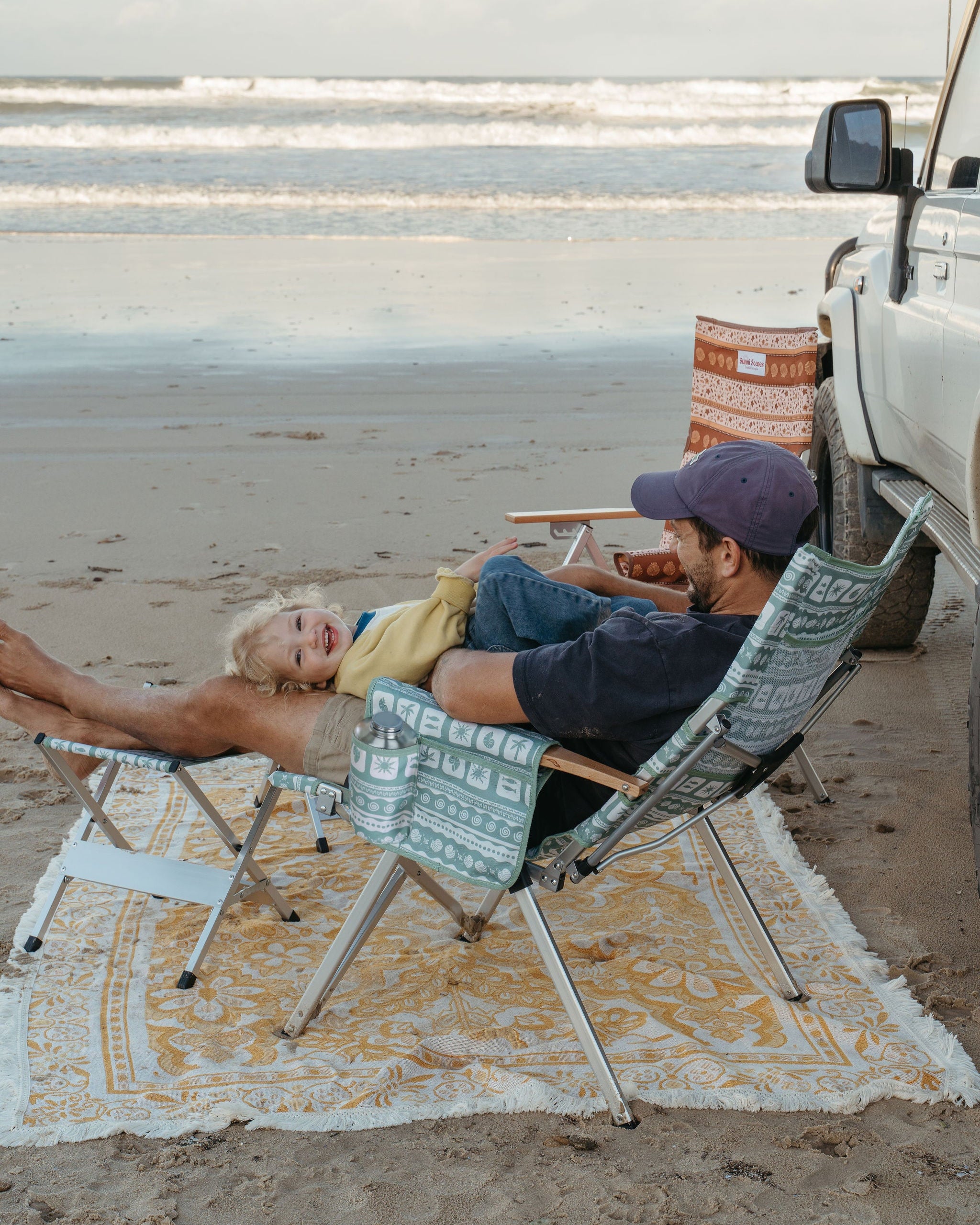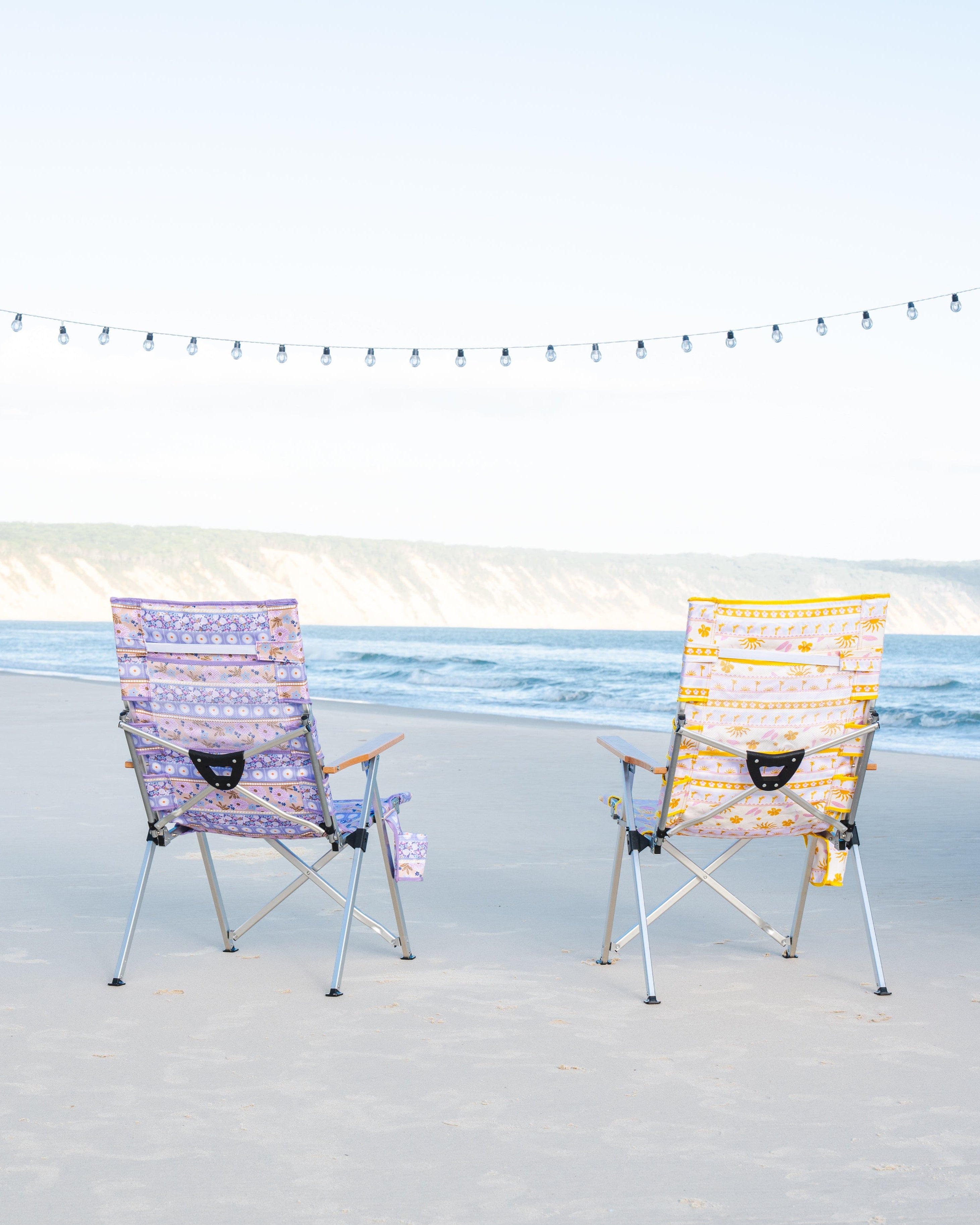 What sets our chairs apart is their compact folding design, reminiscent of classic camp chairs, making them easy to transport and store. Available in exclusive Sunni Scenes printed patterns, these chairs are the only ones of their kind in Australia, adding a unique flair to your camping gear.