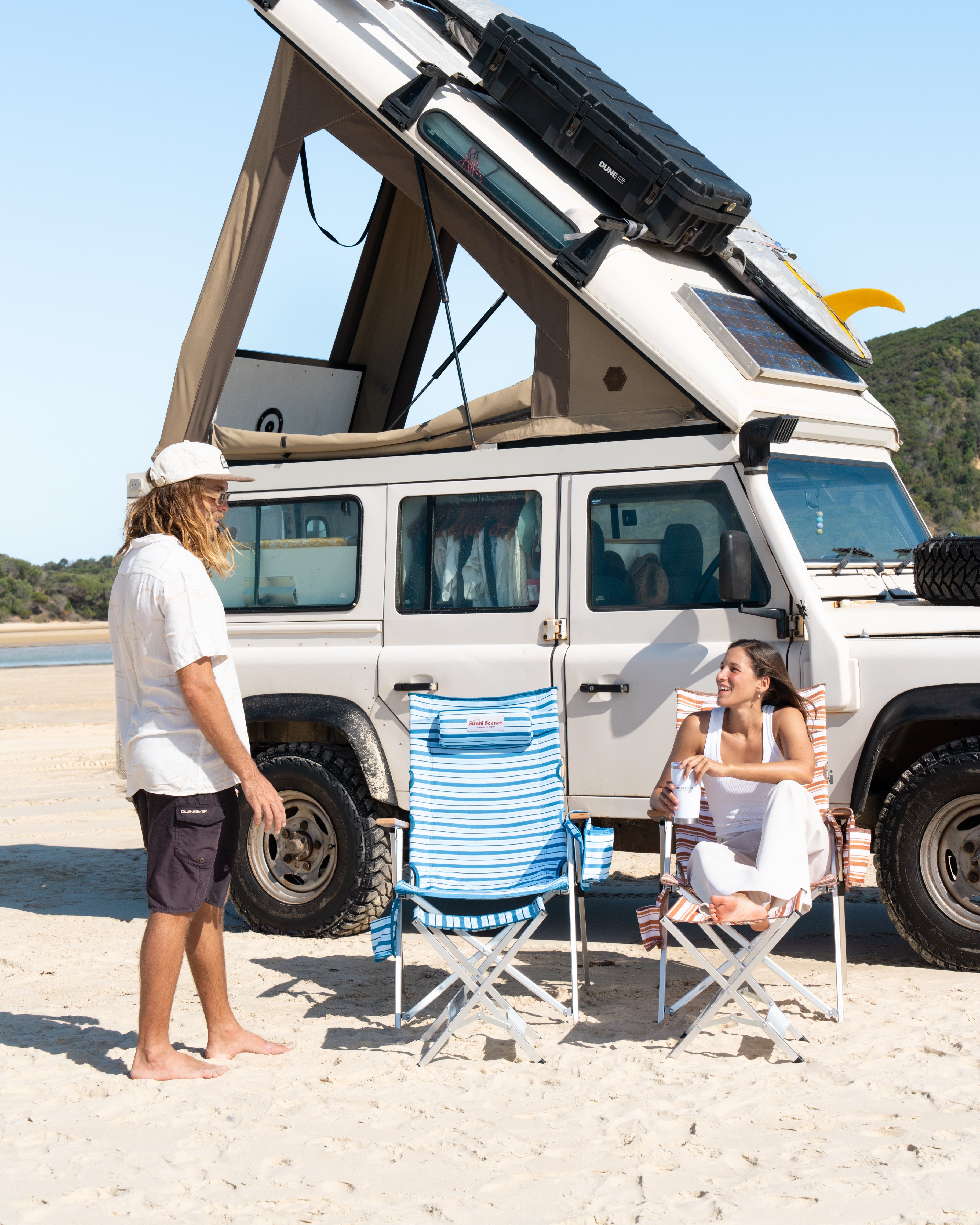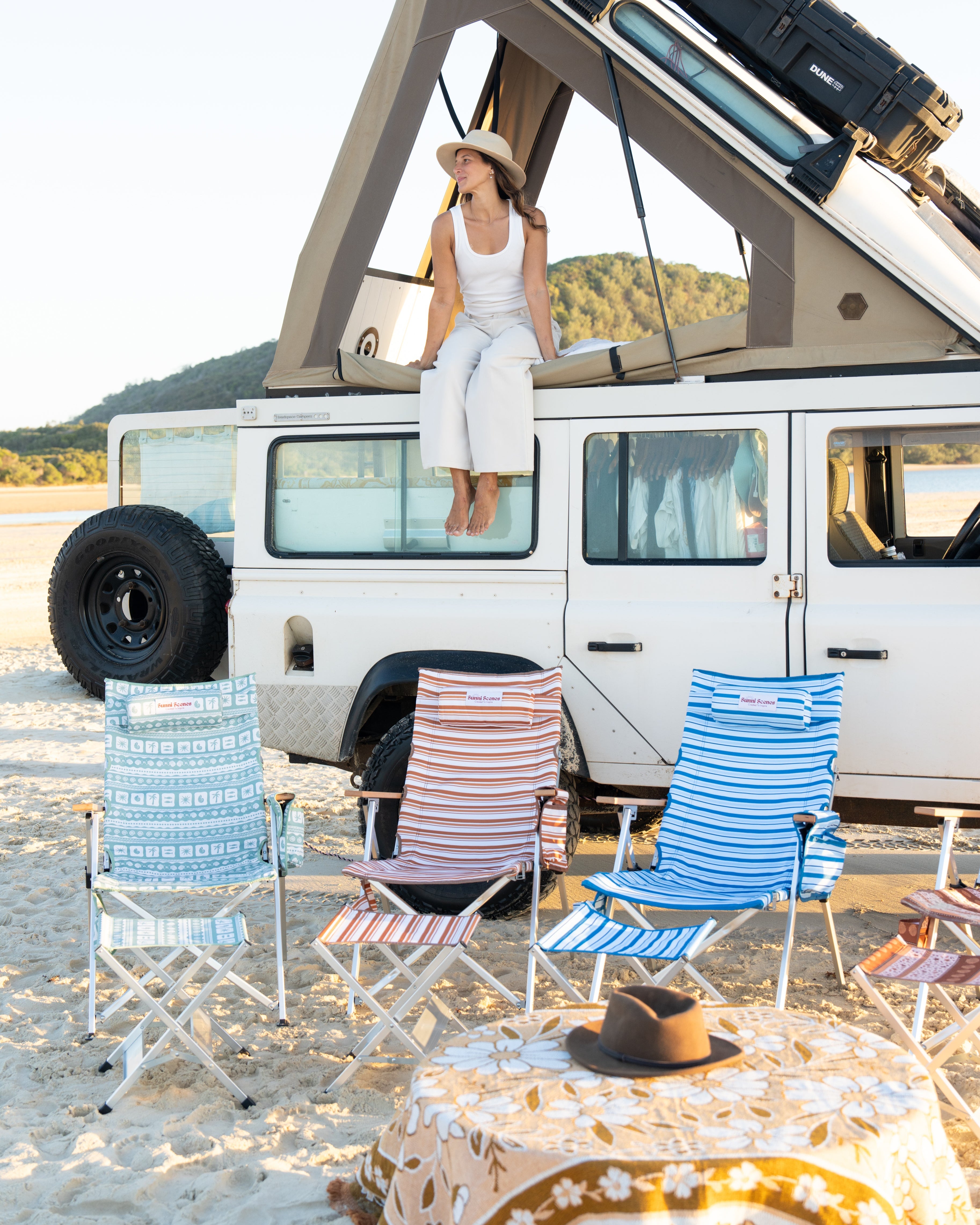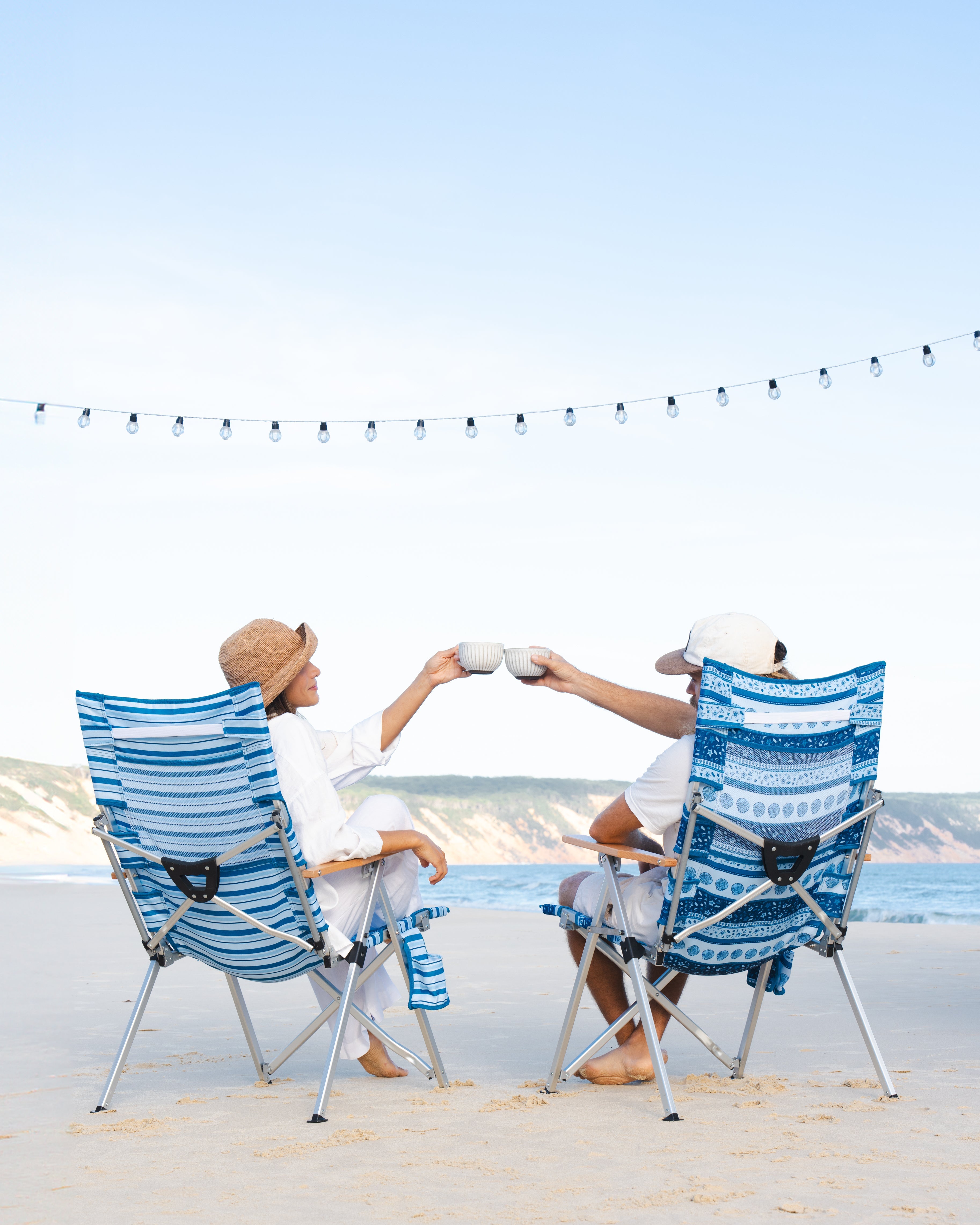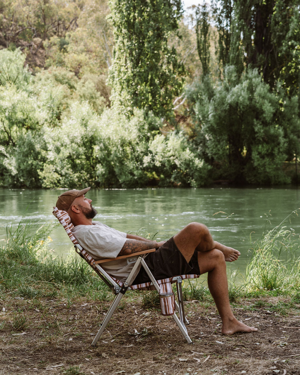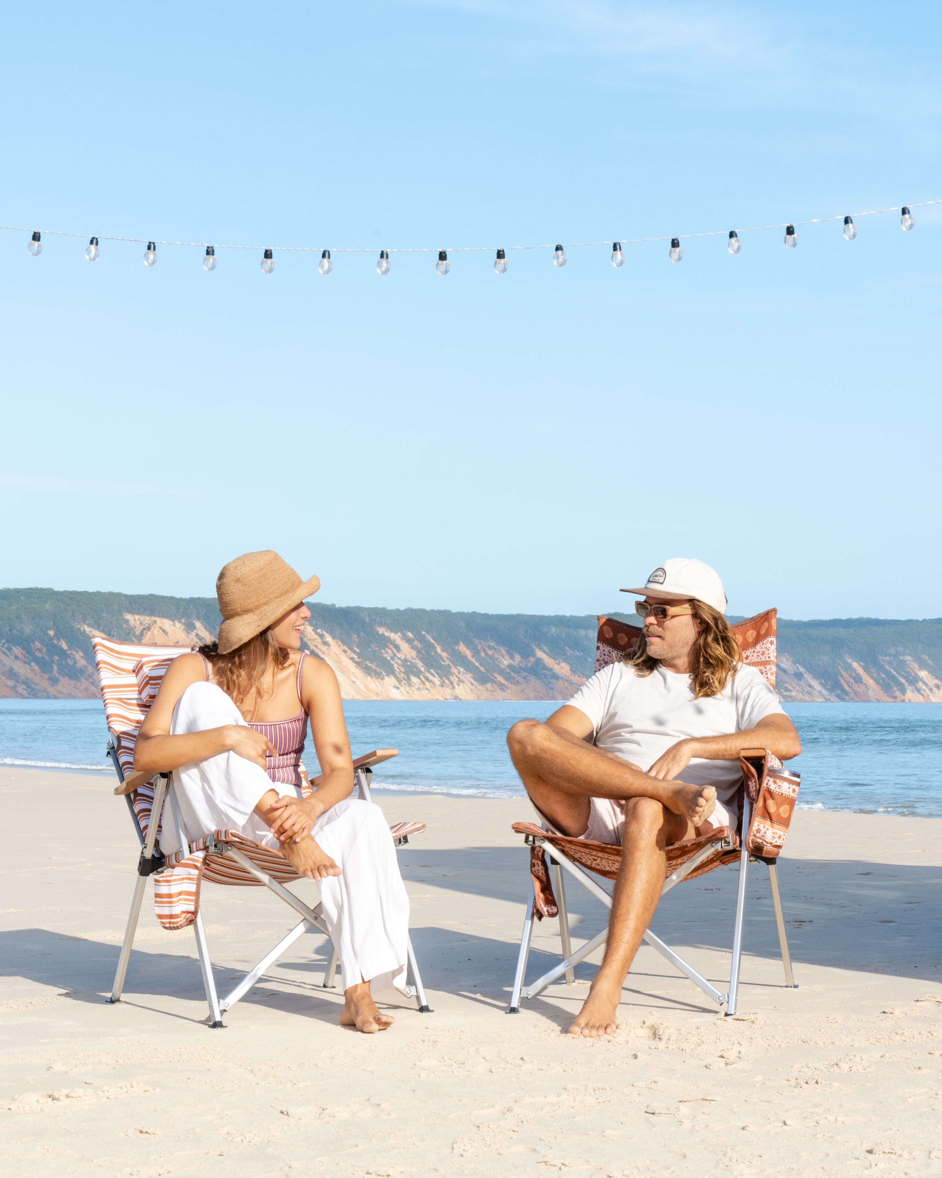What sets our chairs apart is their compact folding design, reminiscent of classic camp chairs, making them easy to transport and store. Available in exclusive Sunni Scenes printed patterns, these chairs are the only ones of their kind in Australia, adding a unique flair to your camping gear.