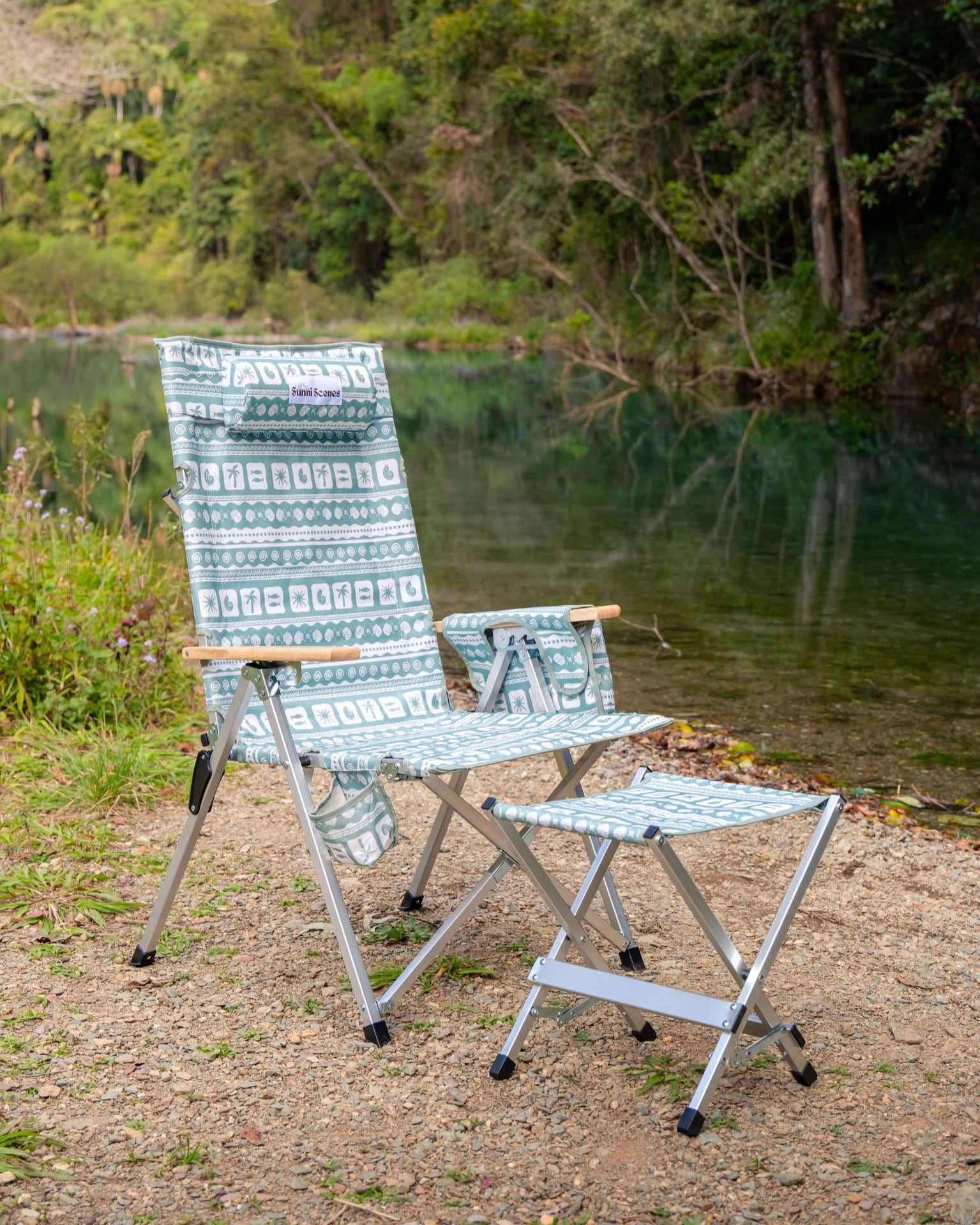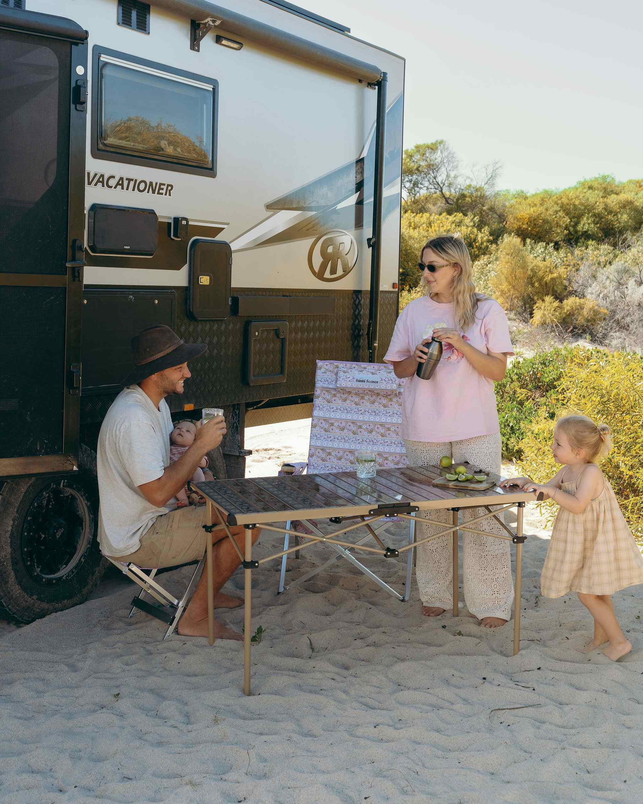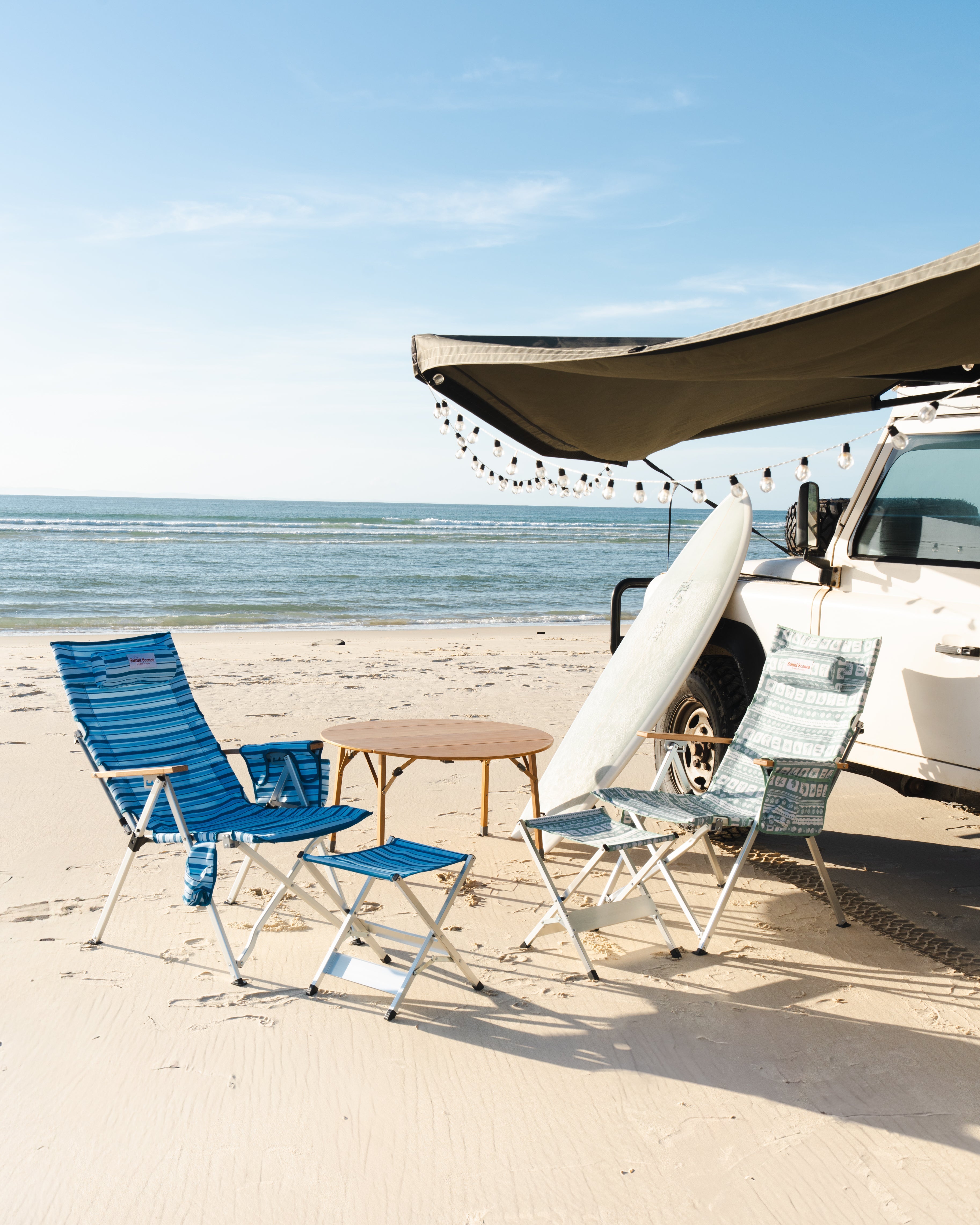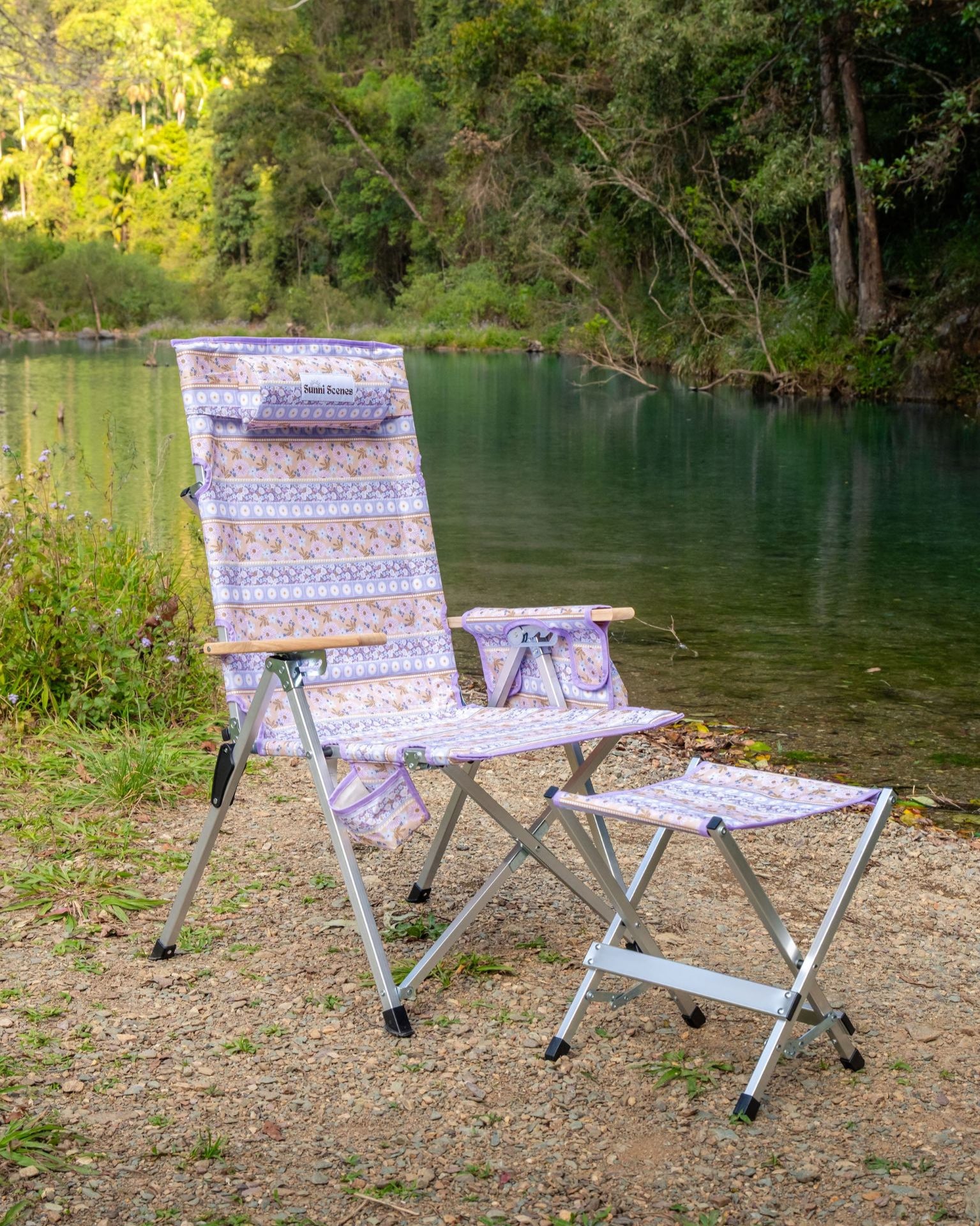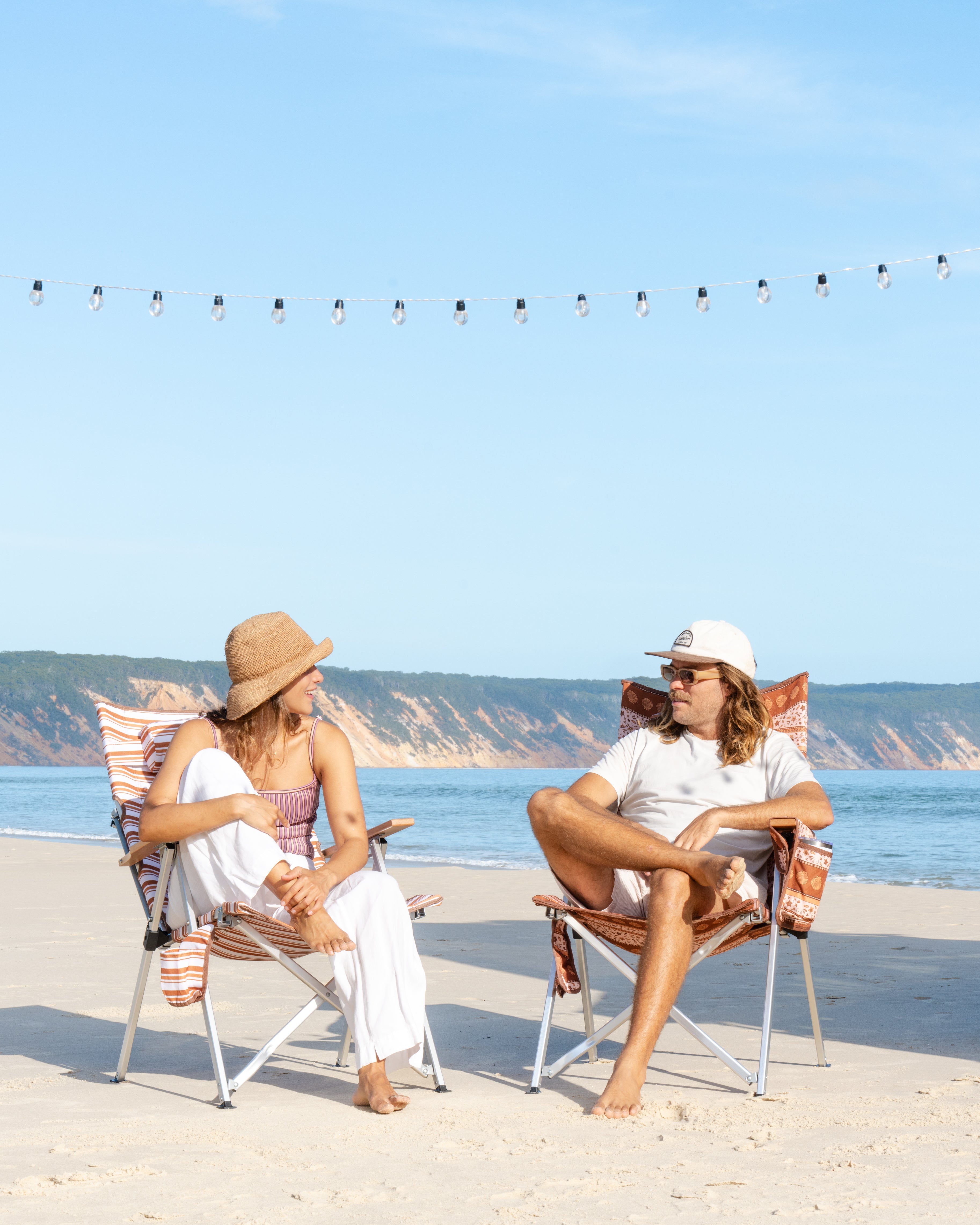 What sets our chairs apart is their compact folding design, reminiscent of classic camp chairs, making them easy to transport and store. Available in exclusive Sunni Scenes printed patterns, these chairs are the only ones of their kind in Australia, adding a unique flair to your camping gear.