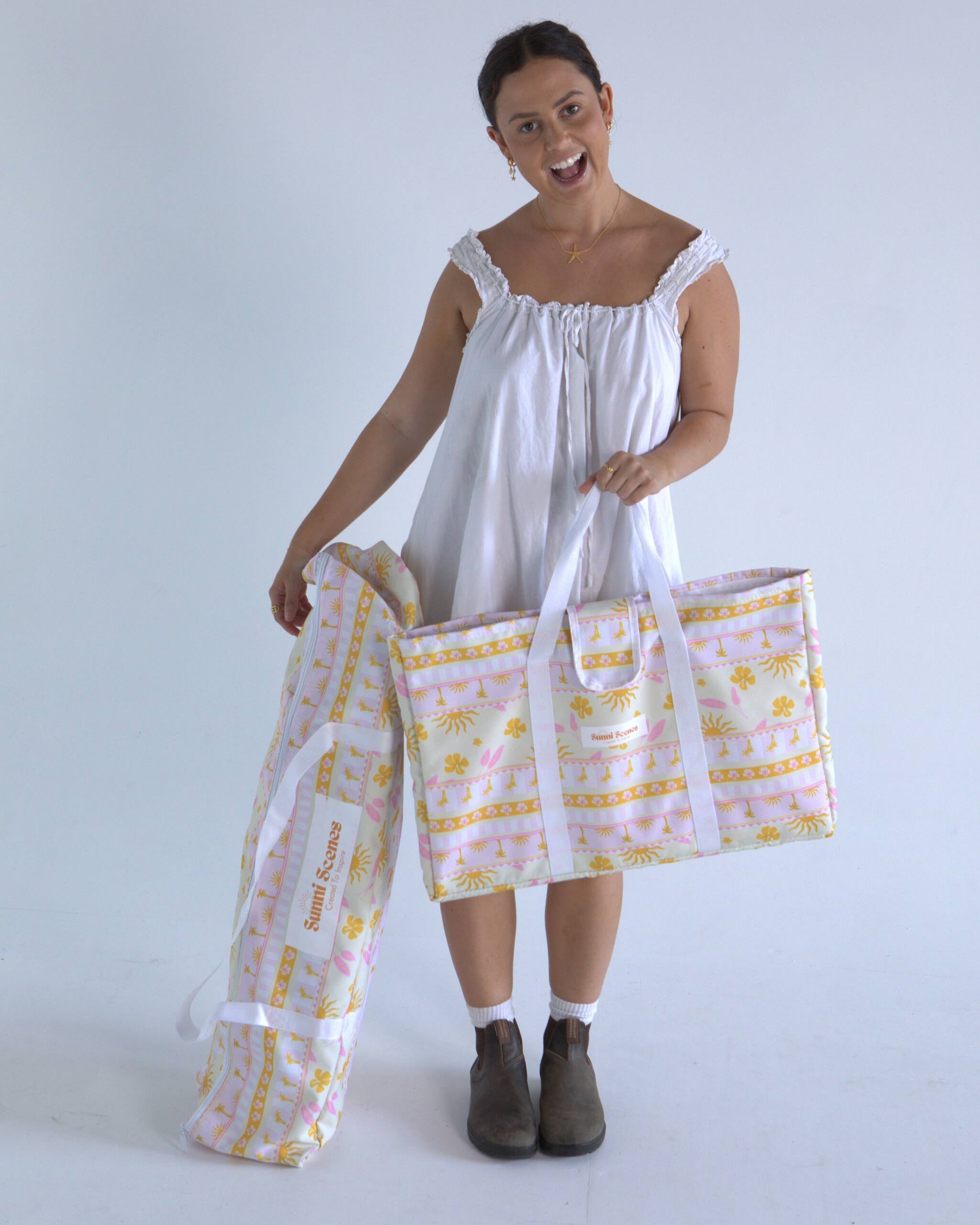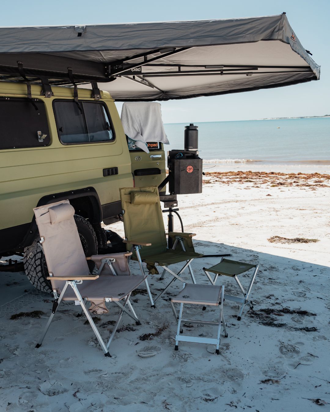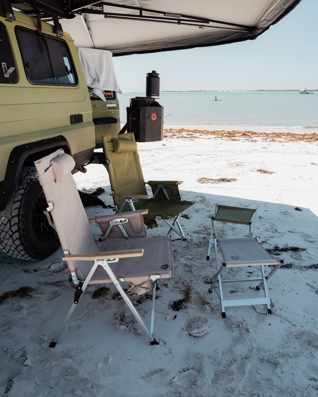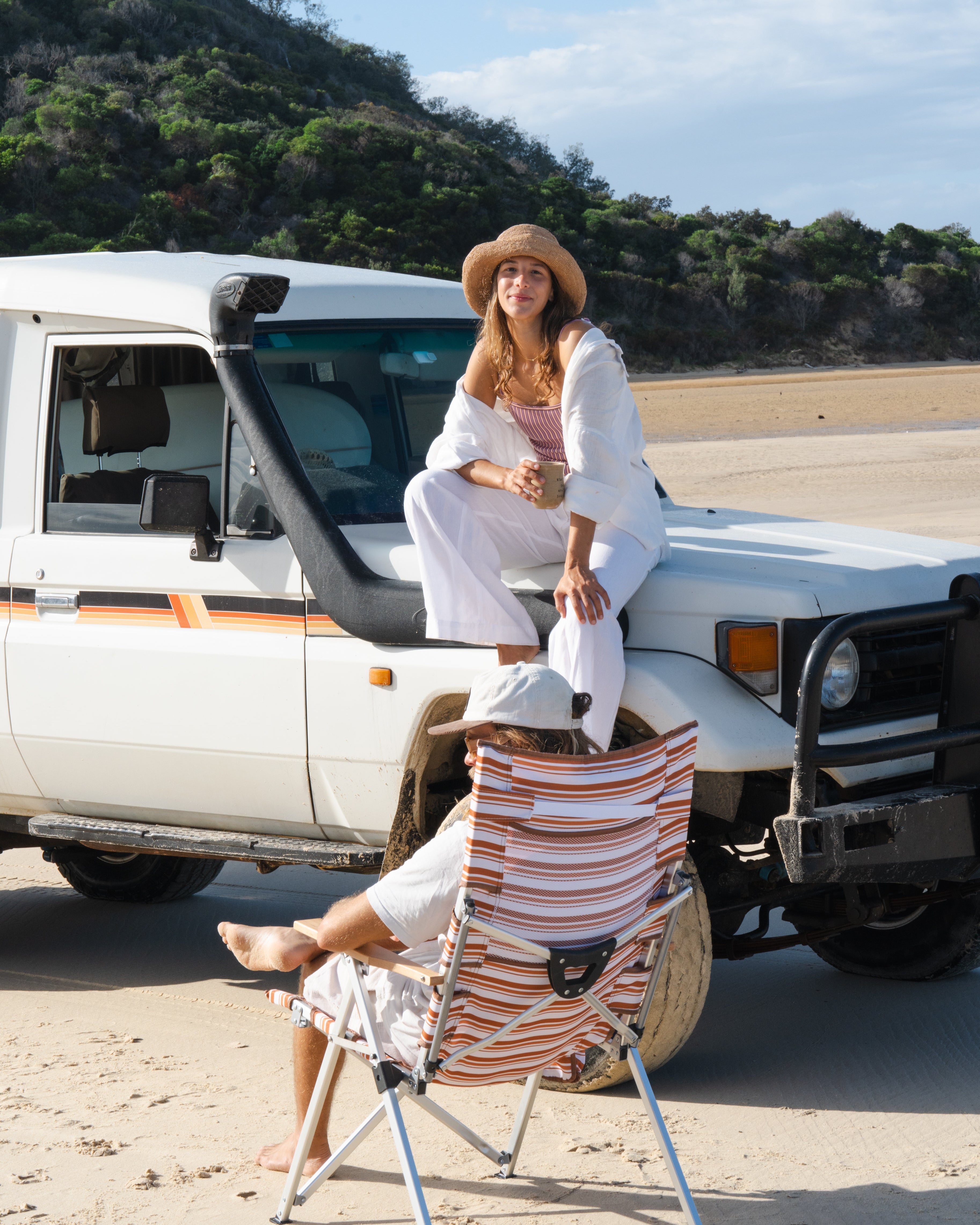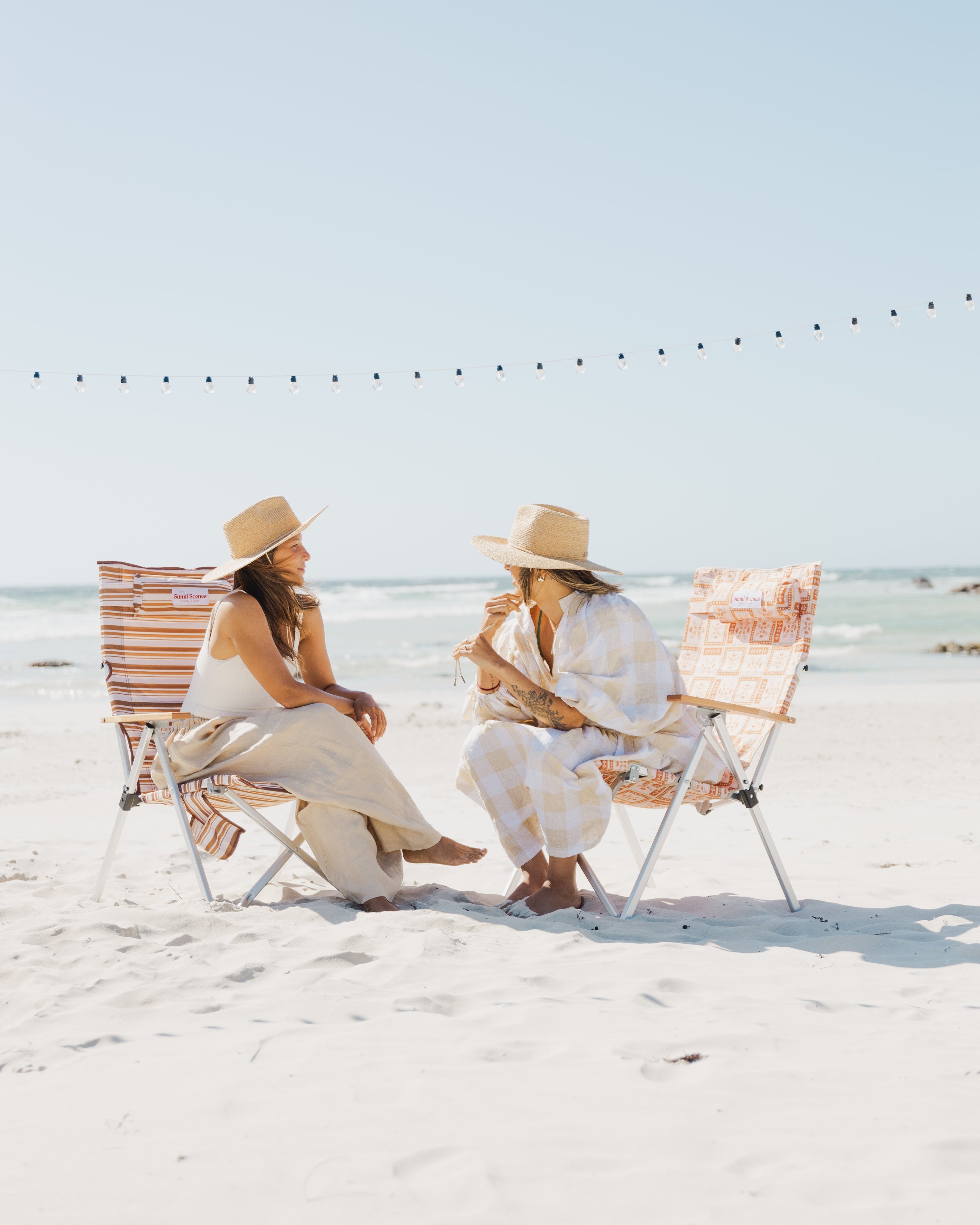 What sets our chairs apart is their compact folding design, reminiscent of classic camp chairs, making them easy to transport and store. Available in exclusive Sunni Scenes printed patterns, these chairs are the only ones of their kind in Australia, adding a unique flair to your camping gear.