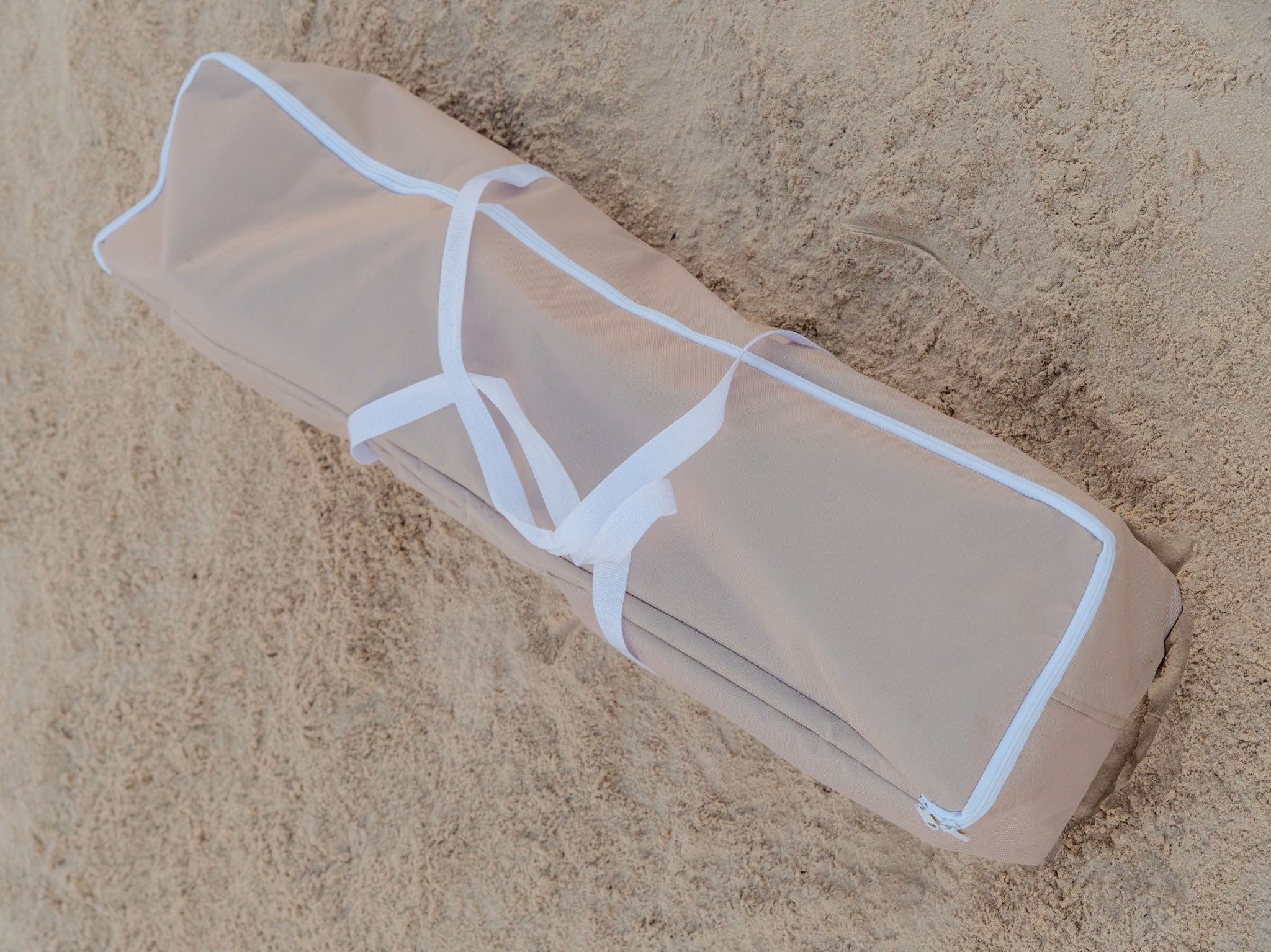 Stamped with Sunni Scenes Logo, Four stage reclining, Removable matching head rest, Compact quad fold pack up design, Generously sized cup holder & Quick dry material.
