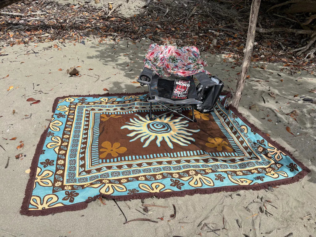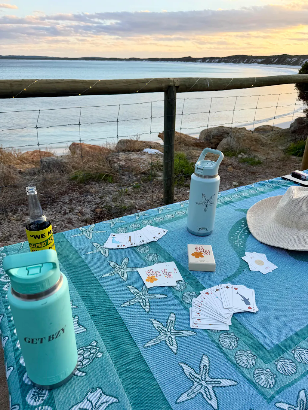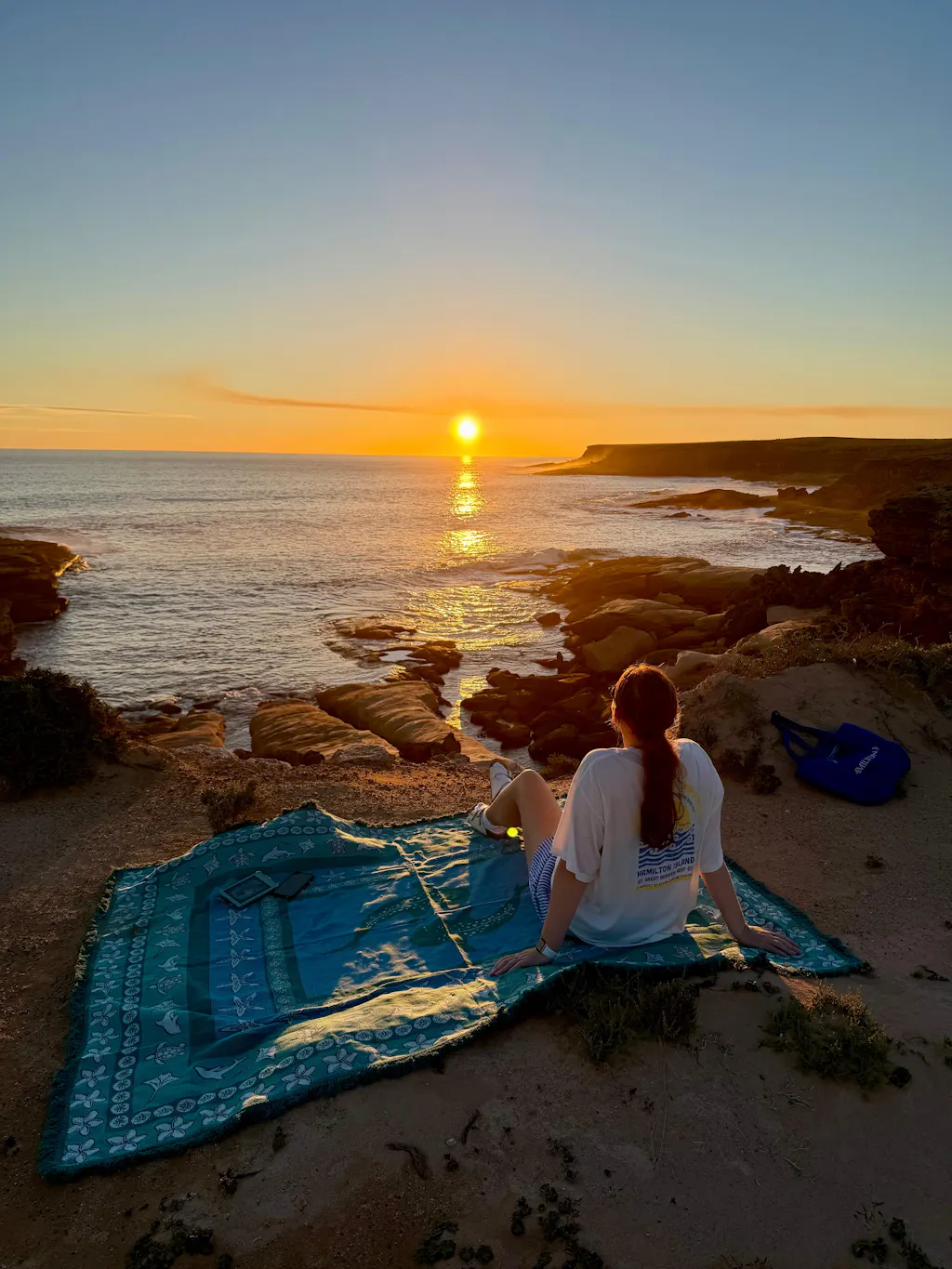 This rug came out a week before we left for our lap around Australia to see the whale sharks. We couldn’t be happier with our purchase and have used this rug every day of our trip, as a picnic blanket, table cloth and beach towel. Couldn’t love this product more!!