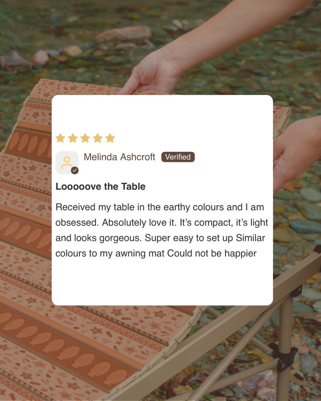 ✔ Australia’s first boho-printed table design – Make your camp setup as stylish as it is practical